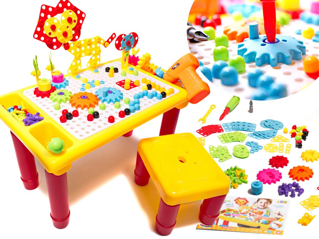 Konstrukční stavebnice Magic Panel je ideální hračkou pro kluky i holčičky. Panel se vkládá do horní části stolečku, který má navíc boční úložné prostory pro odložení všeho potřebného pro hru. K sezení poslouží malá židlička. Součástí sady je dále vrtačka na baterie se dvěma nástavci a ruční šroubovák s jedním nástavcem. Celkem je zde obsaženo 296 ks různých konstrukčních prvků v různých barvách, ze kterých lze šroubováním pomocí vrtačky libovolně vytvářet obrazce, mozaiky, vzory a prostorové 3D obrazce. Vše záleží jen na představivosti dítěte. Hra se stavebnicí podporuje u dětí představivost, motorické schopnosti a trpělivost. Hračka je určena pro děti od 36 měsíců věku.