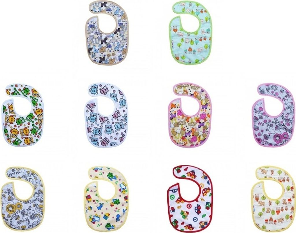 Je vyroben z bavlněného froté materiálu. Vnitřní vrstva je podšita měkkou folií, která také chrání oděv před znečištěním. Pohodlné a praktické zapínání na suchý zip.