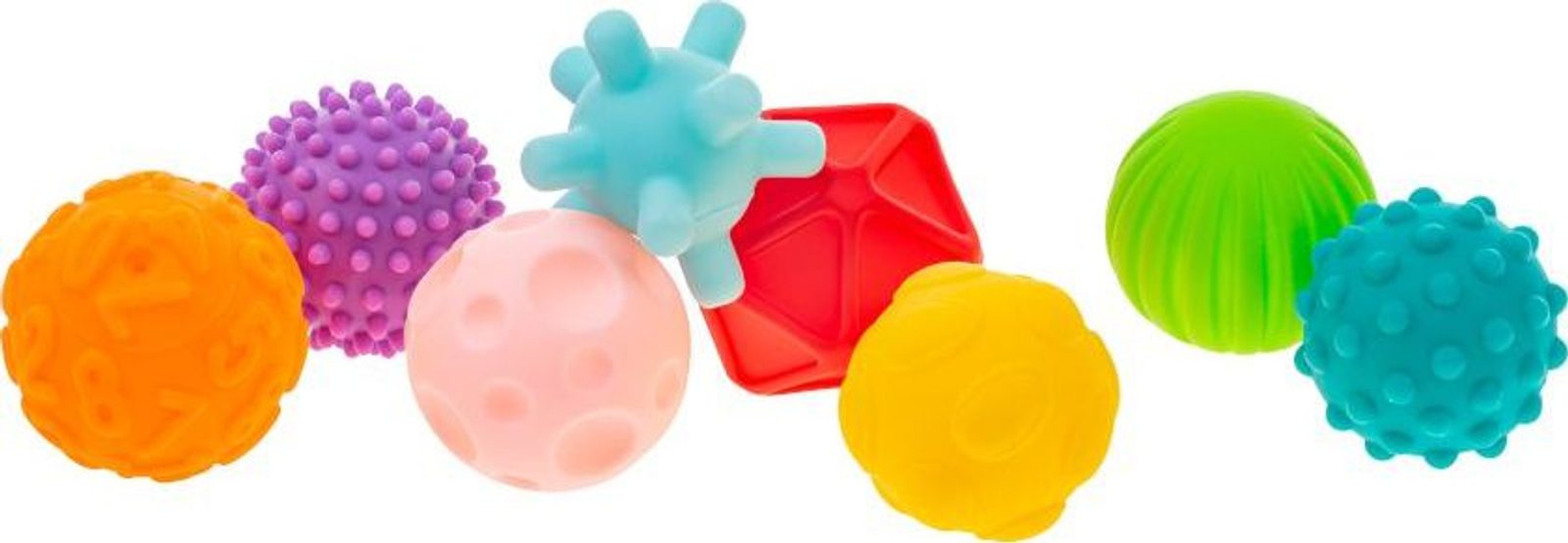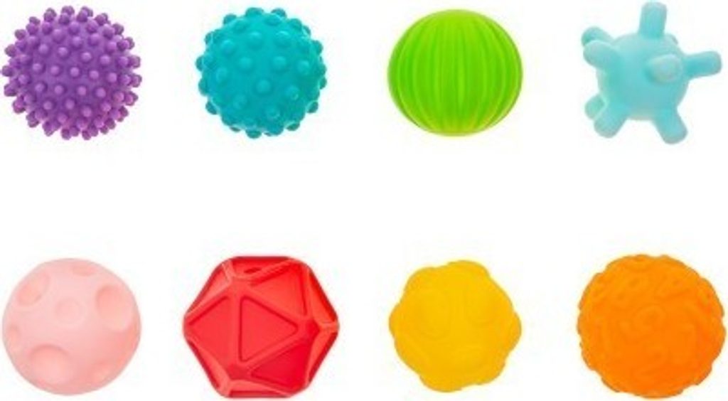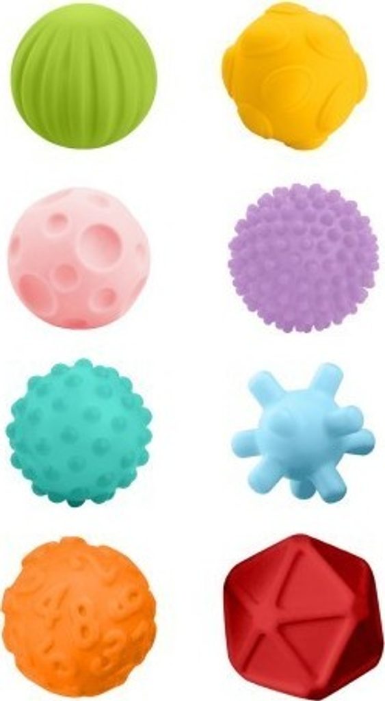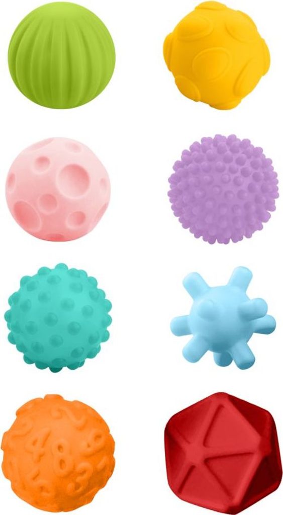 Sada senzorických hraček 8ks. Akuku je vyrobená z gumového materiálu a je proto vhodná i do koupele. Obsahuje 8 různobarevných tvarů s různým povrchem, které po stlačení pískají. Hračky rozvíjí smysly, představivost dítěte, koordinaci pohybů a učí poznávání barev a tvarů. Materiál je bezpečný, hygienický a neobsahuje BPA. Vhodné pro děti od 6 měsíců. Rozměr hraček: cca 7cm.