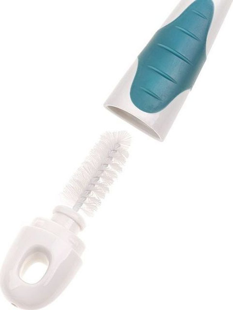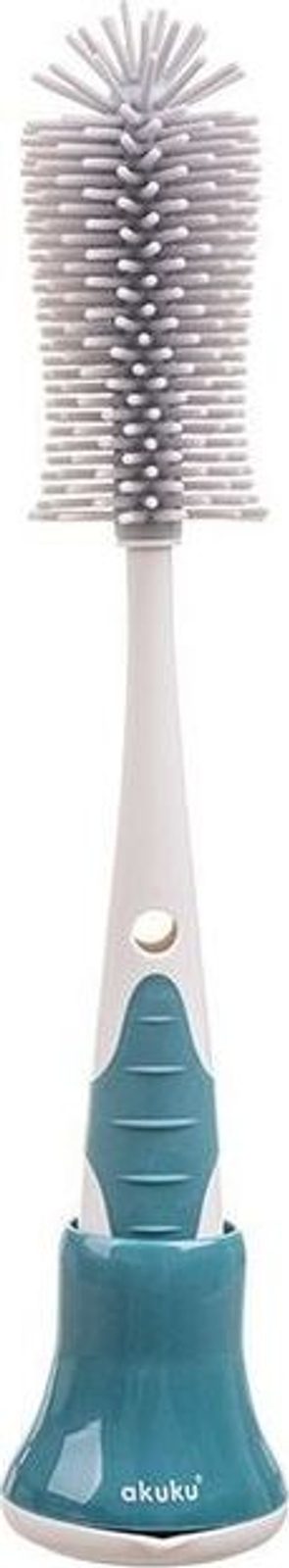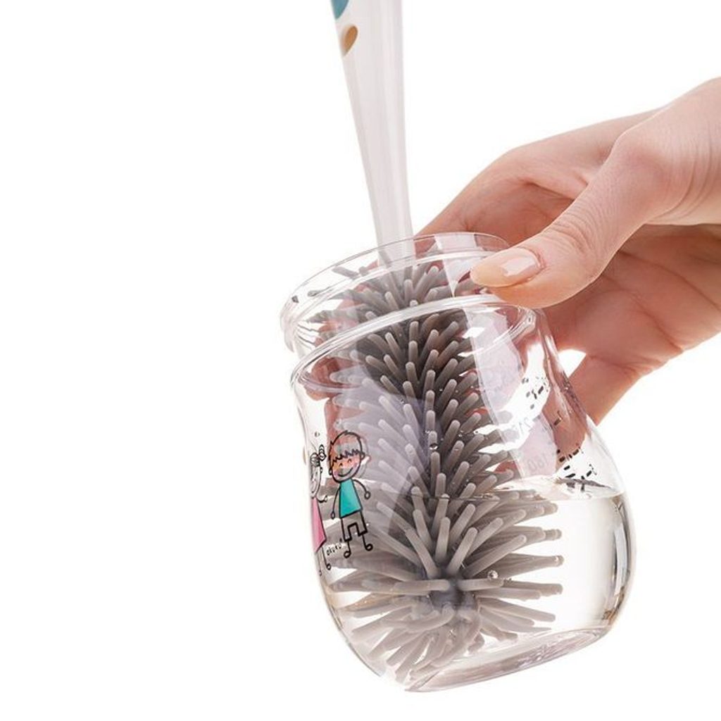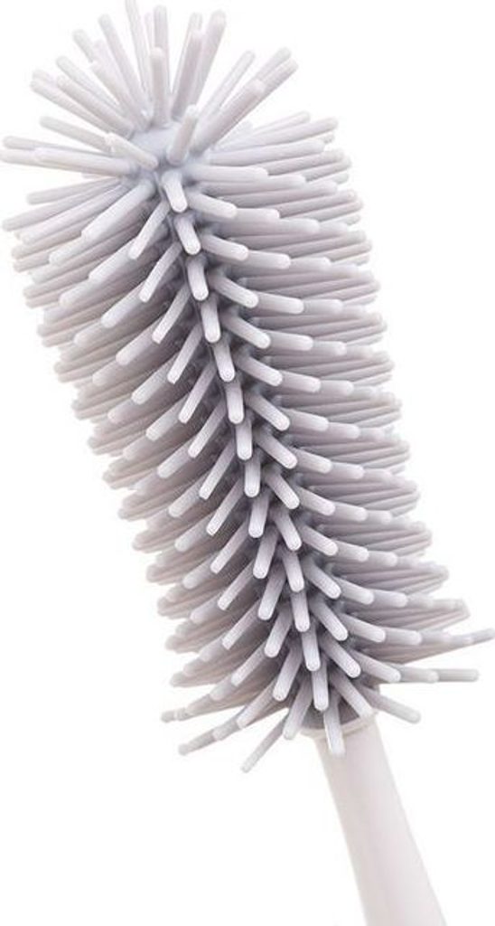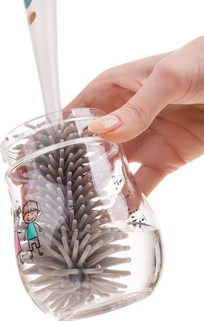 Kartáček na čištění lahví s měkkými silikonovými štětinami zajišťuje čištění lahví a nádob bez poškrábání. Správně profilovaný hrot se dostane do těžko dostupných míst a pohodlná protiskluzová rukojeť poskytuje stabilní úchop. Má spirálovou špičku pro čištění struků. Kartáč je dodáván se stojánkem pro pohodlné skladování ve svislé poloze. Vyrobeno z odolných a bezpečných materiálů, které neobsahují Bisfenol A (0 % BPA).