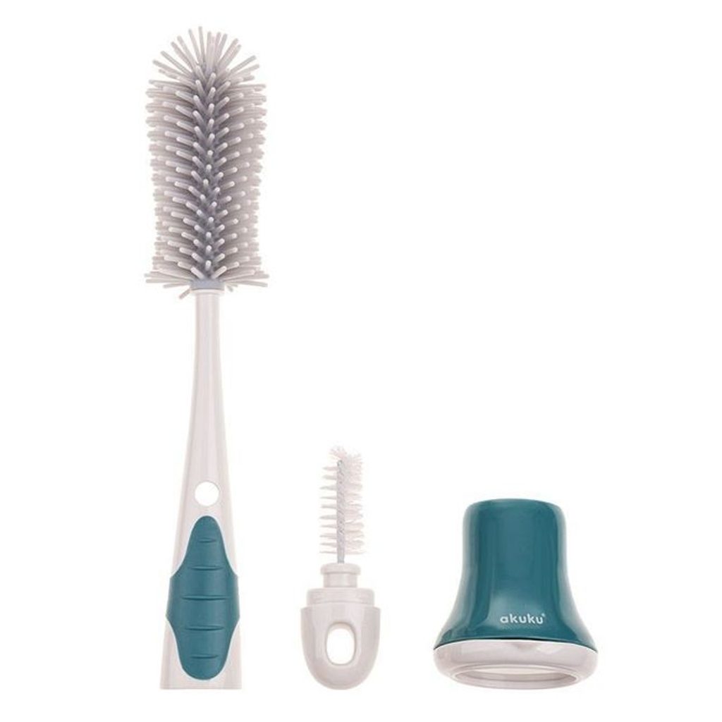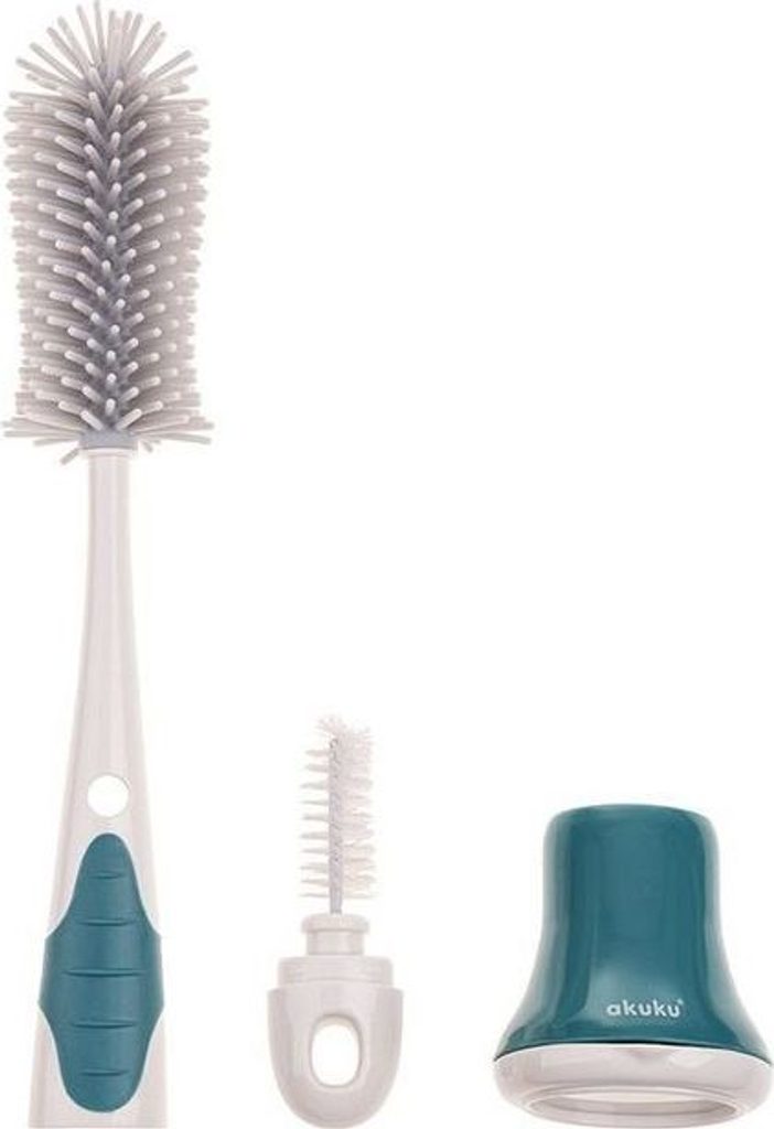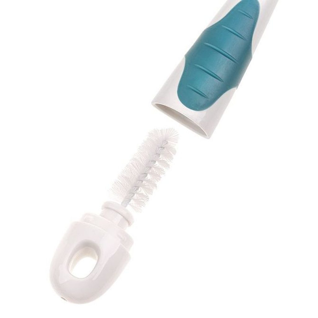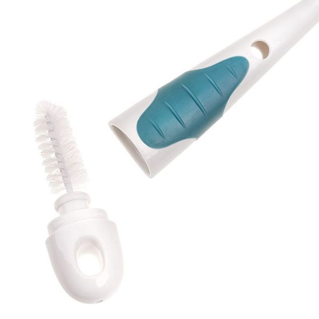 Kartáček na čištění lahví s měkkými silikonovými štětinami zajišťuje čištění lahví a nádob bez poškrábání. Správně profilovaný hrot se dostane do těžko dostupných míst a pohodlná protiskluzová rukojeť poskytuje stabilní úchop. Má spirálovou špičku pro čištění struků. Kartáč je dodáván se stojánkem pro pohodlné skladování ve svislé poloze. Vyrobeno z odolných a bezpečných materiálů, které neobsahují Bisfenol A (0 % BPA).