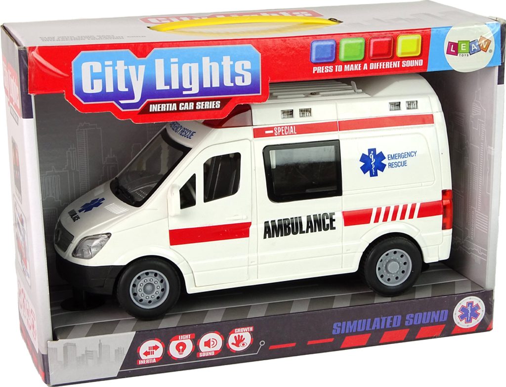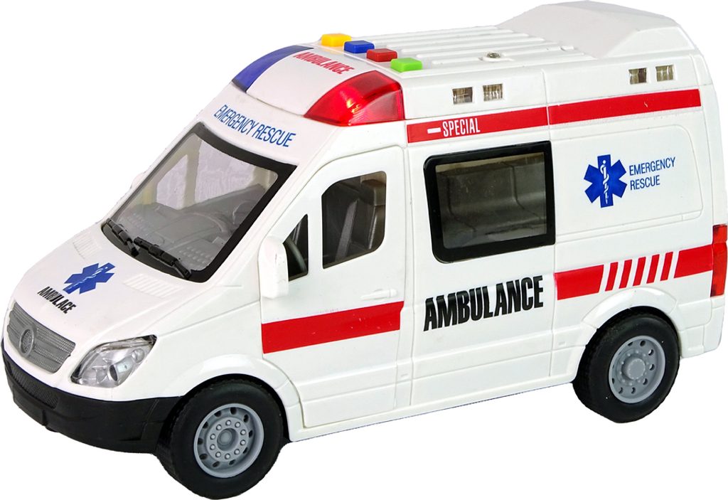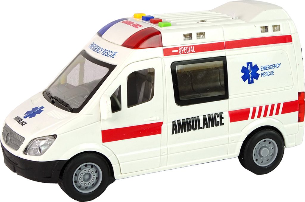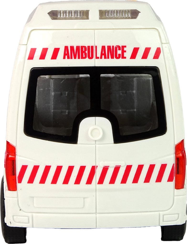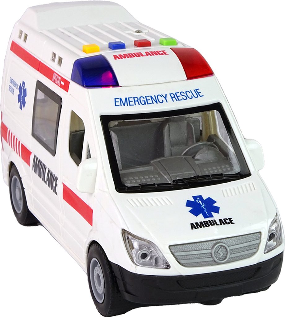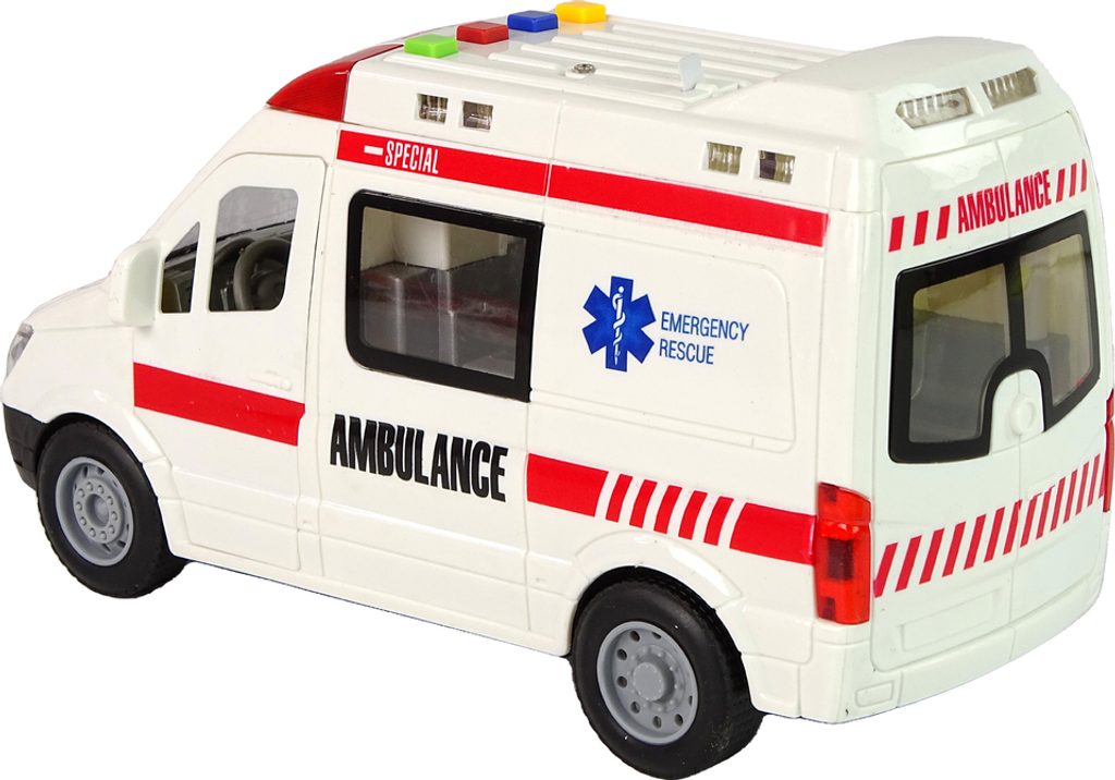 Okouzlující bílý sanitní vůz s třecím pohonem je fascinující hračka - je na baterie a má 4 barevná tlačítka, každé s jiným zvukem. Děti potěší možnost otevřít dveře a prohlédnout si interiér vozidla a také rozsvítit světla, což dále zvyšuje realističnost hry.