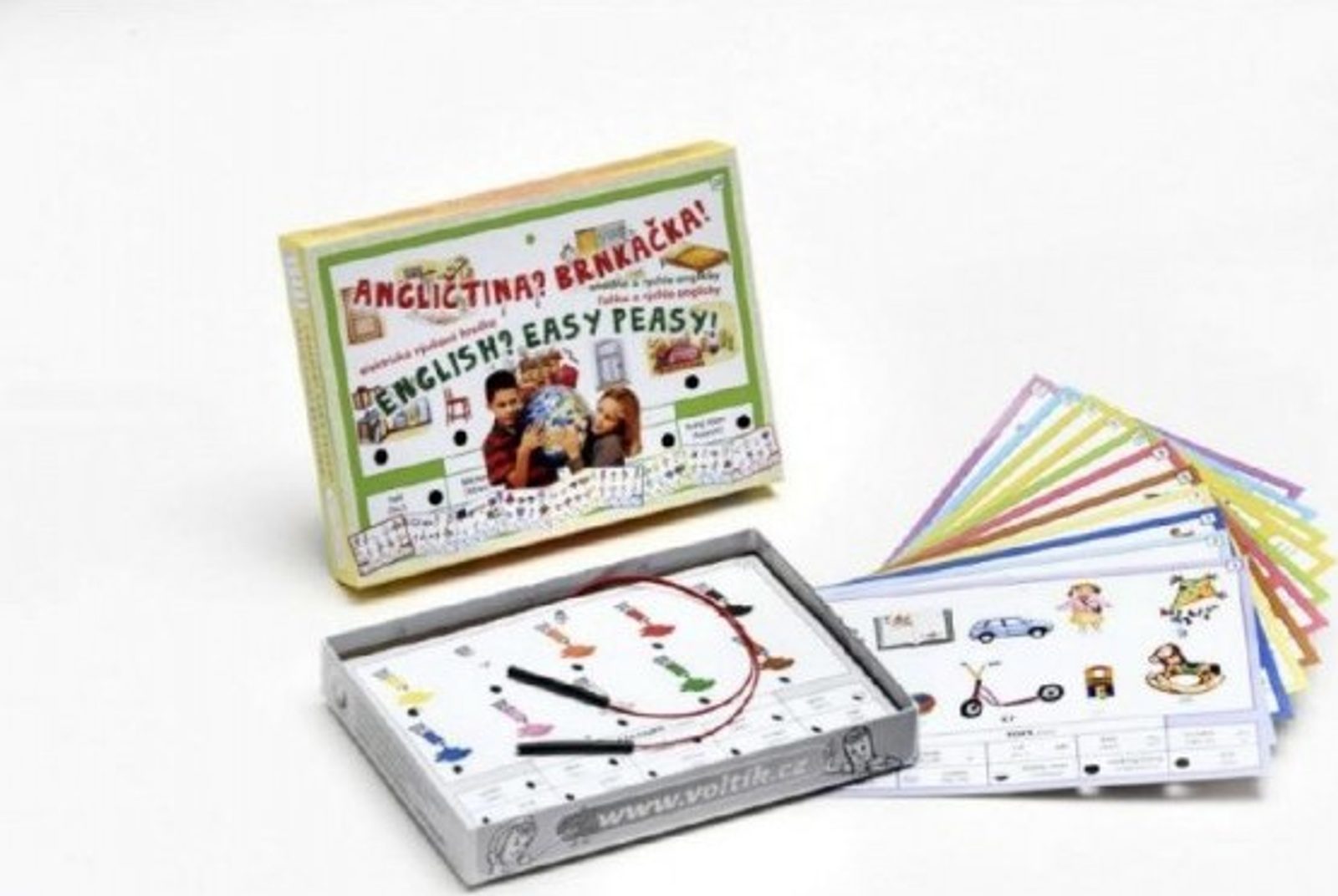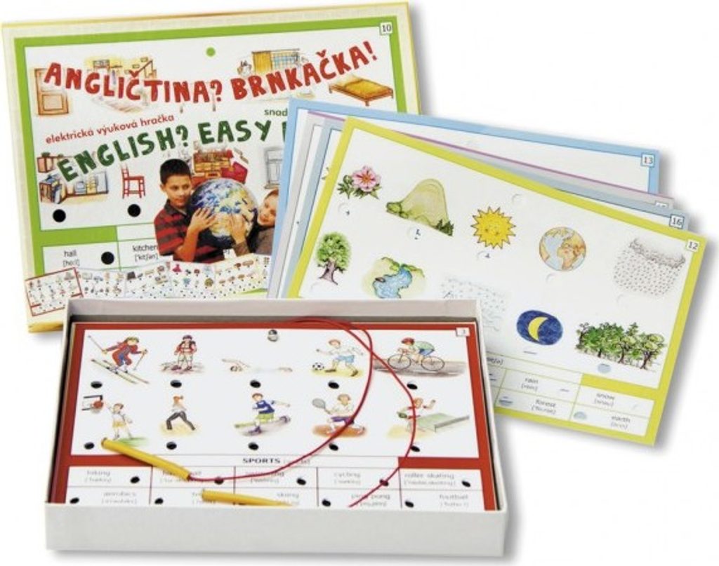 Výuková hračka jak pro všechny děti, které se začínají učit angličtinu, tak i pro pokročilejší, kteří si chtějí zopakovat 160 z nejčastěji používaných anglických slovíček z 16 různých oblastí – od základních čísel přes barvy až po jídlo, sport, povolání a přírodu… Na 16 výměnných listech naleznete vždy po deseti slovech z každé vybrané oblasti. Úkolem je přiřadit obrázek ke správnému anglickému slovíčku, které obrázek představuje. Při správném přiřazení se rozsvítí zelené světýlko. Všechna slovíčka jsou na listech doplněna správnou (psanou) anglickou výslovností. Hračka rovněž obsahuje slovníček s anglickými slůvky použitými na jednotlivých listech a jejich český překlad.