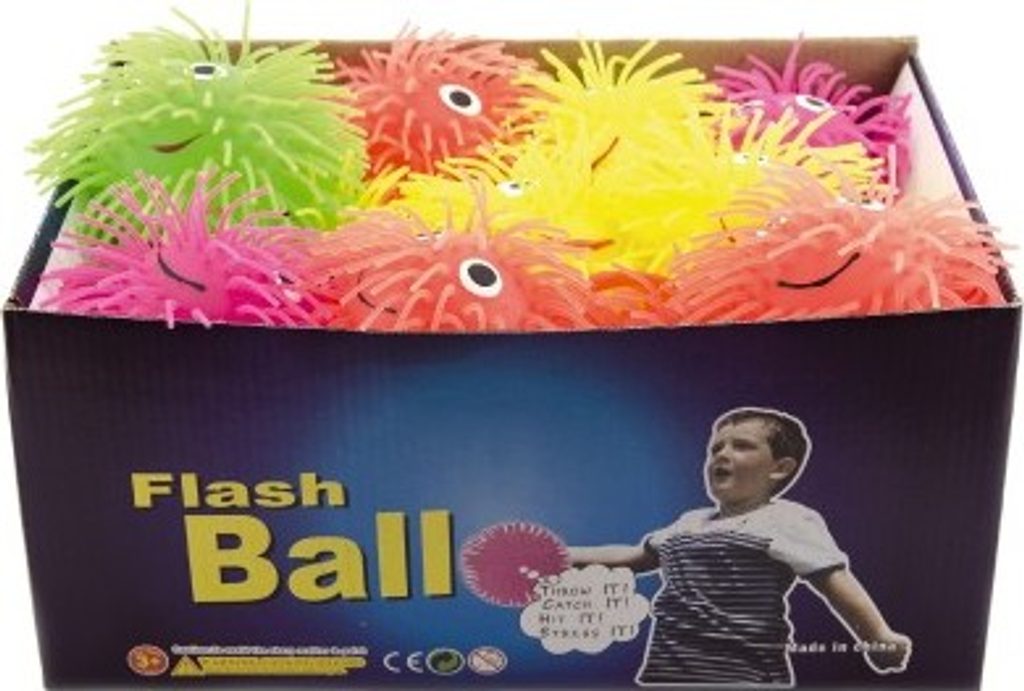Míček lze všemožně mačkat a hníst v ruce. Při mačkání vylézají z ok síťky…