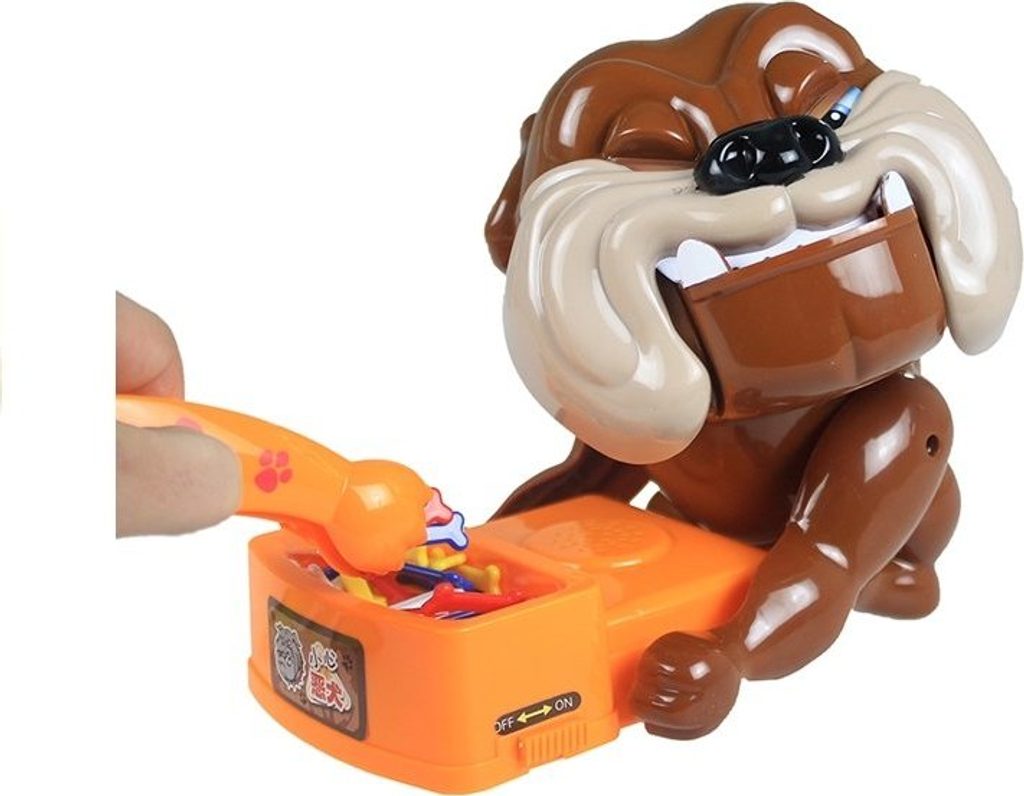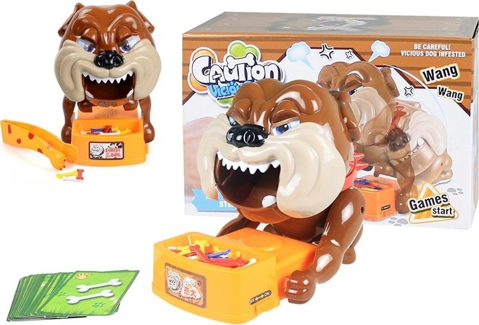 Vyjměte kosti z misky, ale pozor, abyste psa nevzbudili, velmi se zlobí! Zlého psa musíte na hru jen připravit. Chcete-li to provést, jednoduše vložte baterie (nejsou součástí balení), táhněte ho zpět, dokud si nepoloží hlavu na levou tlapku a nezavře oči. Hru začíná nejmladší hráč – vybere si kost a pokusí se ji vzít pinzetou, která je součástí sady. Pokud se pes probudí, hráč je vyřazen ze hry. Chcete-li pokračovat ve hře, musíte buldoka uspat. Hra pokračuje, dokud nezůstane pouze 1 hráč, kterého pes nekousl – tento hráč se stává vítězem.