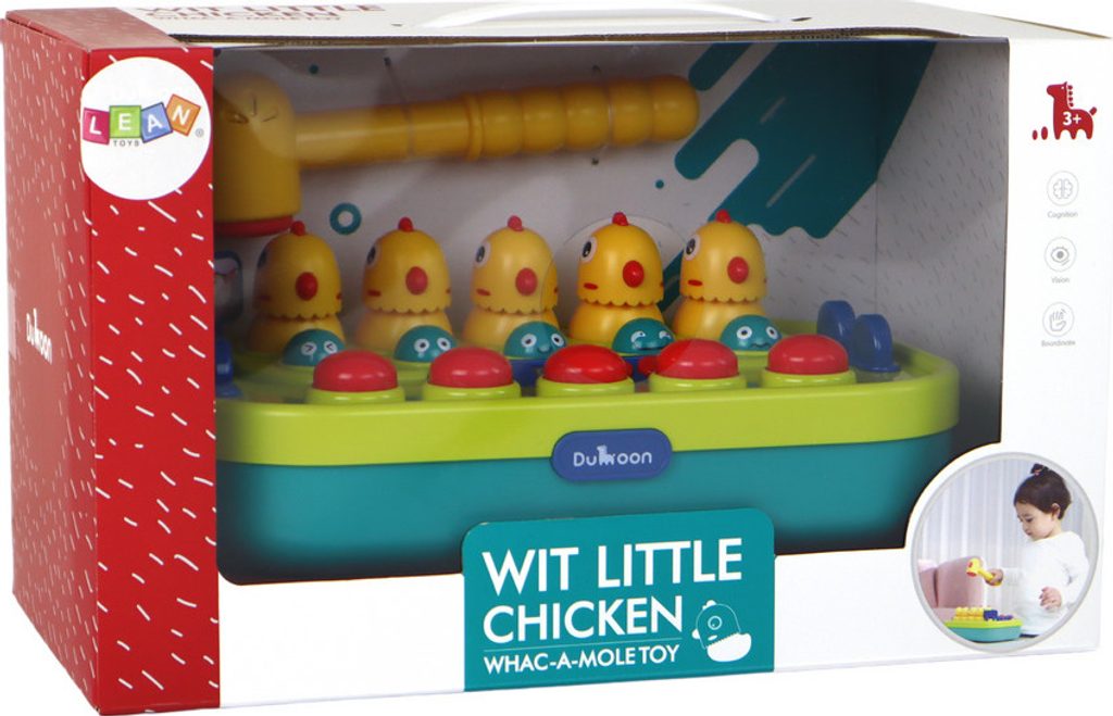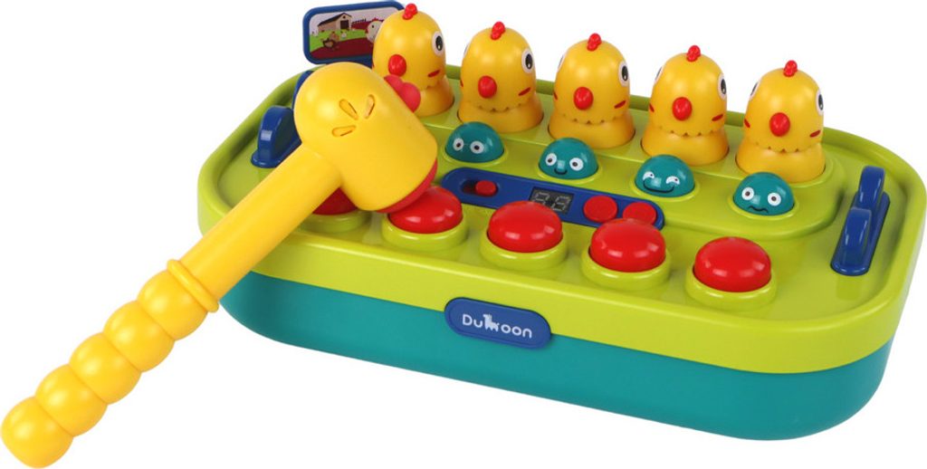 Součástí sady je také žluté kladivo, které při zatřesení vydává zvuk kuřete, což dodává hře další zábavu.