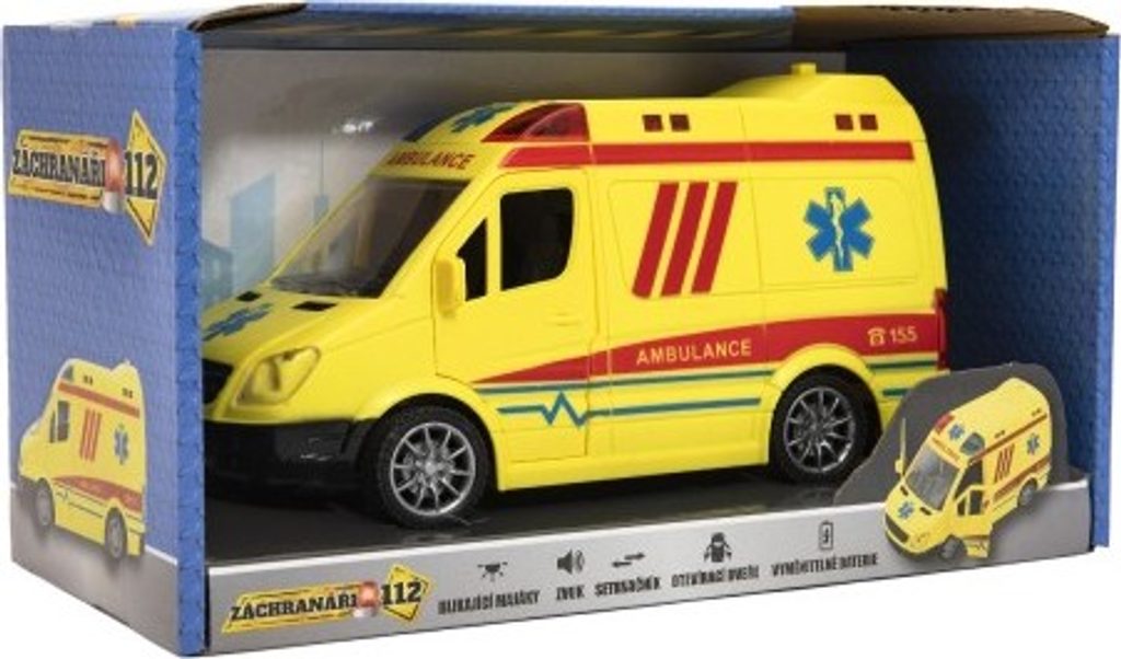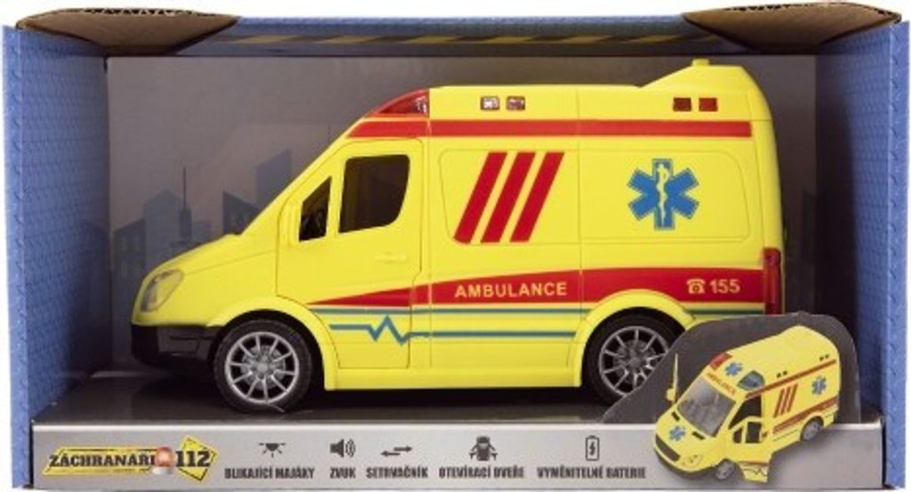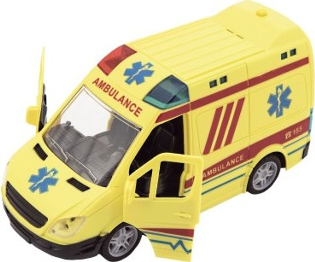 Ambulance je vozidlo, které se využívá při přepravě zraněných pacientů, k dopravě raněných nebo nemocných. Takové autíčko nesmí chybět v žádné sbírce autíček. Baterie 3x AG13 jsou součástí výrobku. Ambulance má otevírací dveře a je na setrvačník. Vyrobeno z kvalitního a odolného plastu.