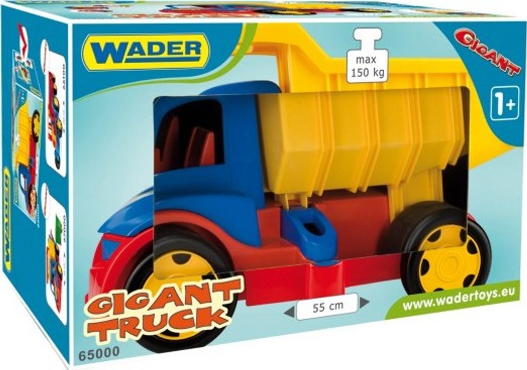 Barevný nákladní vůz z kvalitního plastu veze na své sklopné korbě hromadu…