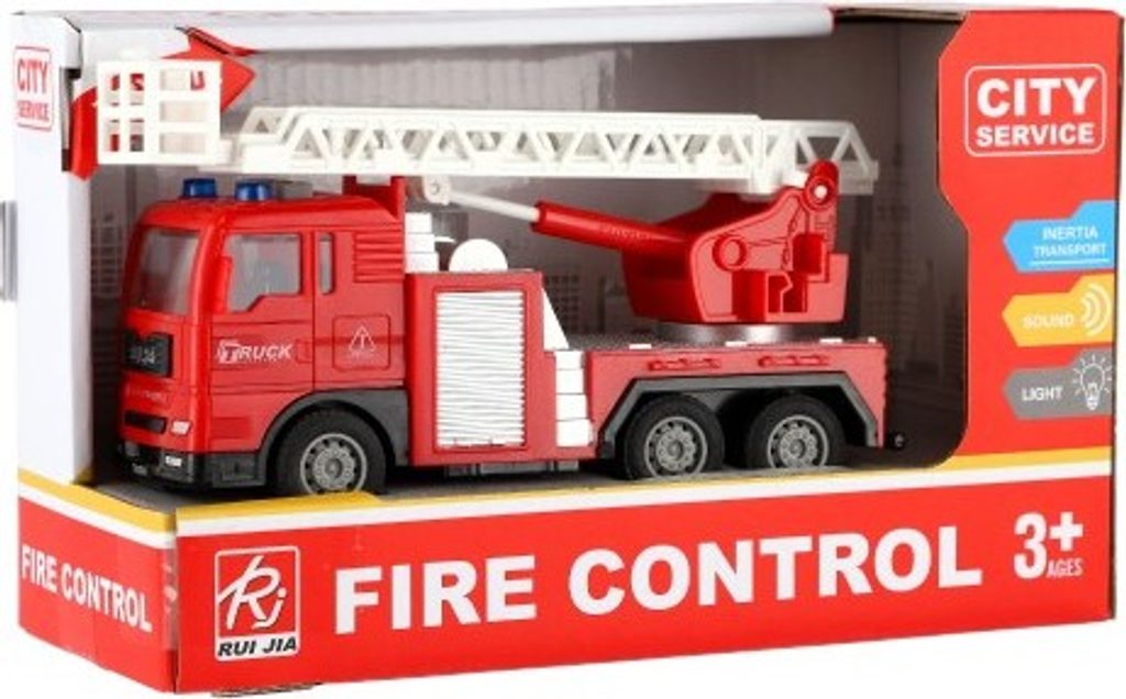 Hasičská auta jsou nápomocná při dopravních nehodách, požárech nebo v těžko dostupných místech. Staň se velitelem hasičských vozů s požárním autem se žebříkem. Auto je na setrvačník v měřítku 1:32. Auto vydává zvuky a svítí mu majáčky na střeše.