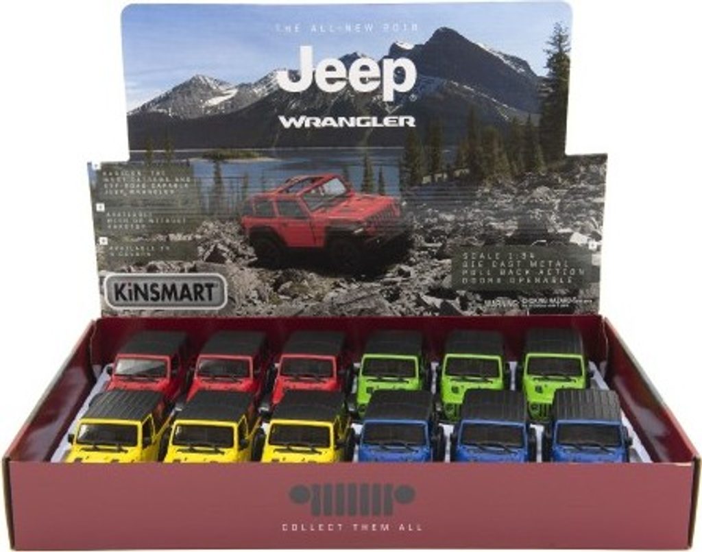 Krásný kovový model autíčka Jeep Wrangler v měřítku 1:34. Autíčko má otevírací dveře a je na zpětné natažení. Dostupné ve čtyřech barevných variantách. MIX variant zboží, odesíláme náhodně. Jestliže si přejete určitou variantu, napište nám poznámku v posledním kroku objednávky. Pokud bude varianta dostupná, odešleme dle vašeho požadavku.