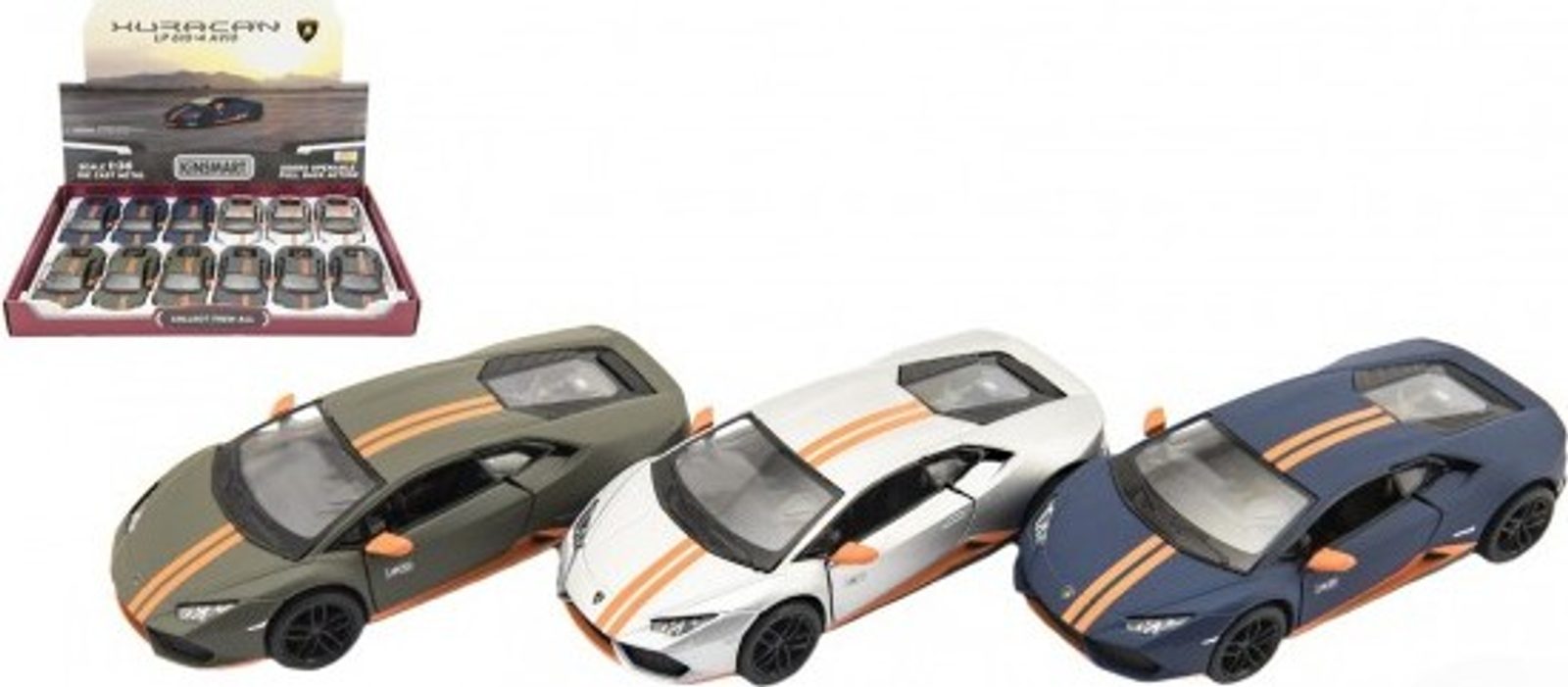 Krásný a věrný kovový model sportovního auta Lamborghini Huracan. Dostupné je ve 4 barevných variantách a je na zpětné natažení.