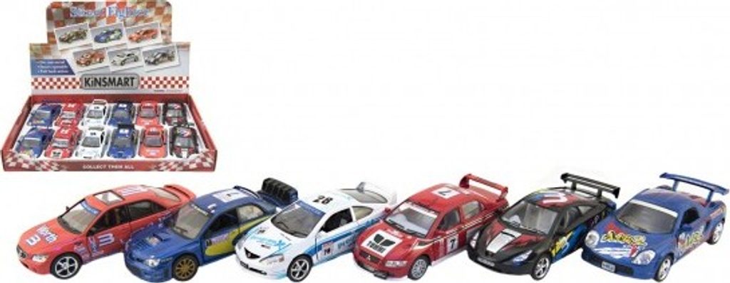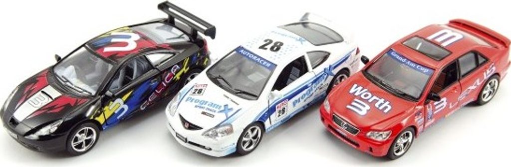 Krásné a věrné kovové modely závodních aut. Dostupných je 6 druhů a všechny jsou na zpětné natažení.
