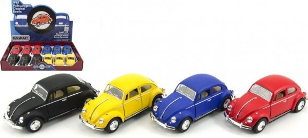 Krásný a věrný kovový model auta Volkswagen Beetle. Dostupné je ve 4 barevných variantách a je na zpětné natažení.
