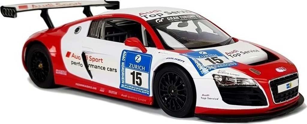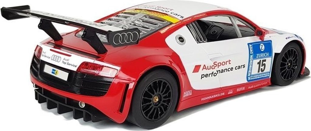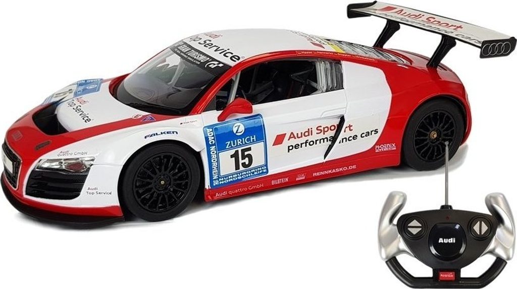 Pokud se chcete stát mistrem volantu závodního vozu, bude to pro vás ideální sada. Vynikající licenční auto na dálkové ovládání Audi R8 LMS v měřítku 1:14. Model vyrobený v licenci Audi byl reprodukován do nejmenších detailů. Jedná se o velmi krásný a rychlý model. Jak karoserie, tak další detaily vozidla byly přesunuty do menšího měřítka.