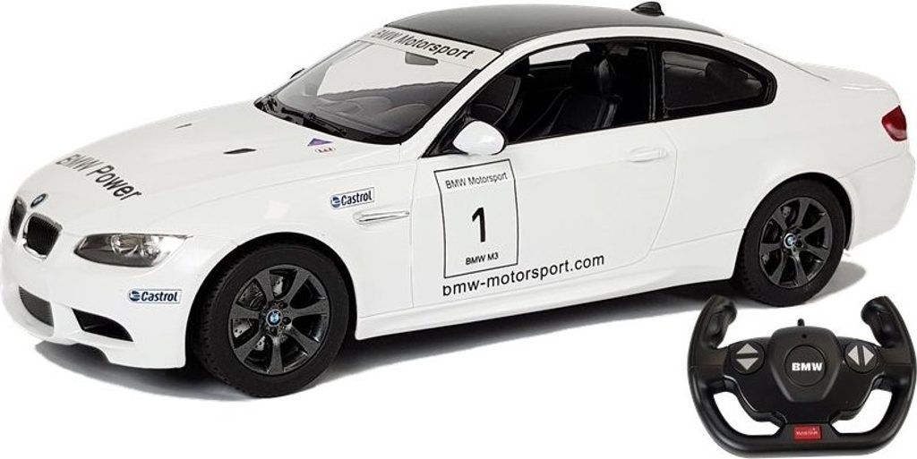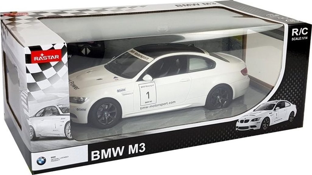 Pokud se chcete stát mistrem řízení sportovních vozů, bude to pro vás ideální sada. Vynikající licencované auto BMW M3 na dálkové ovládání v měřítku 1:14. Model vyrobený v licenci BMW byl reprodukován do nejmenších detailů. Jedná se o velmi krásný a rychlý model. Jak karoserie, tak další detaily vozidla byly přesunuty do menšího měřítka. Na silnici působí silueta stroje lehce a dynamicky. Odpružení zajišťuje hladkou jízdu. K zábavě přispívají svítící přední a zadní světla, která se rozsvěcují při pohybu. Tato multifunkční hračka rozvíjí motorickou koordinaci a motorické dovednosti batolete a zároveň se baví. Snadno ovladatelné dálkové ovladače vpřed, vzad a otáčení vpravo a vlevo.