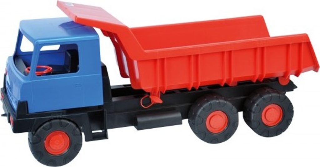 Barevný nákladní vůz z kvalitního plastu veze na své sklopné korbě hromadu…
