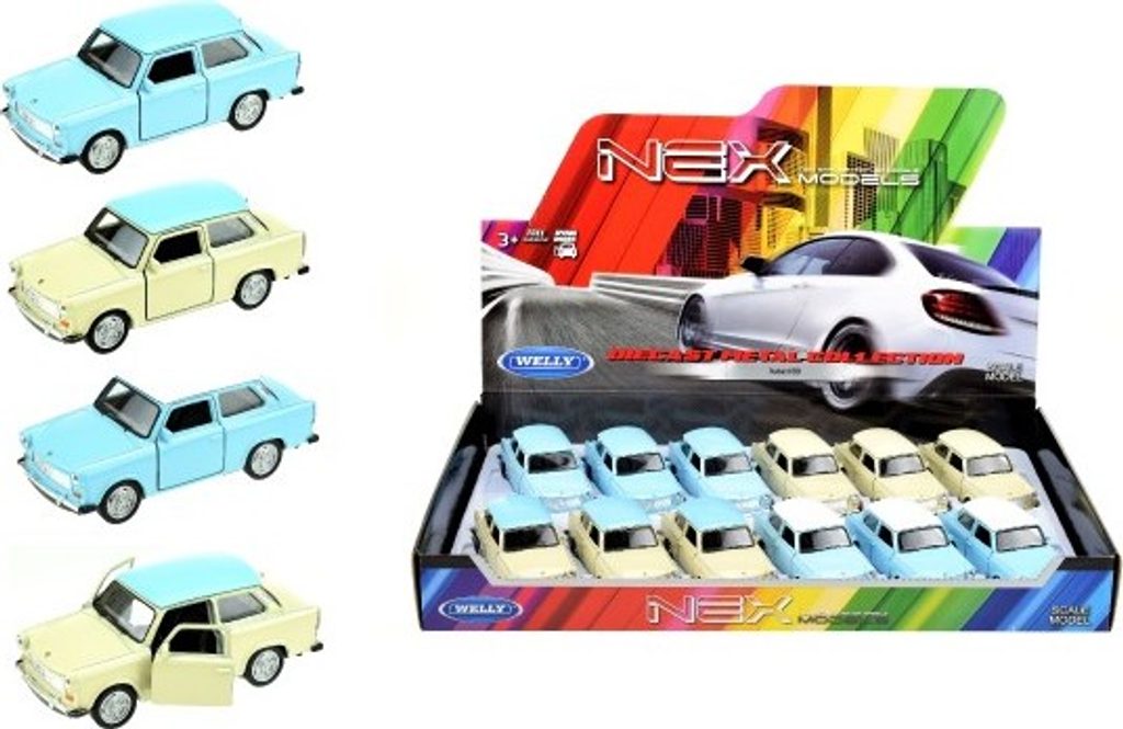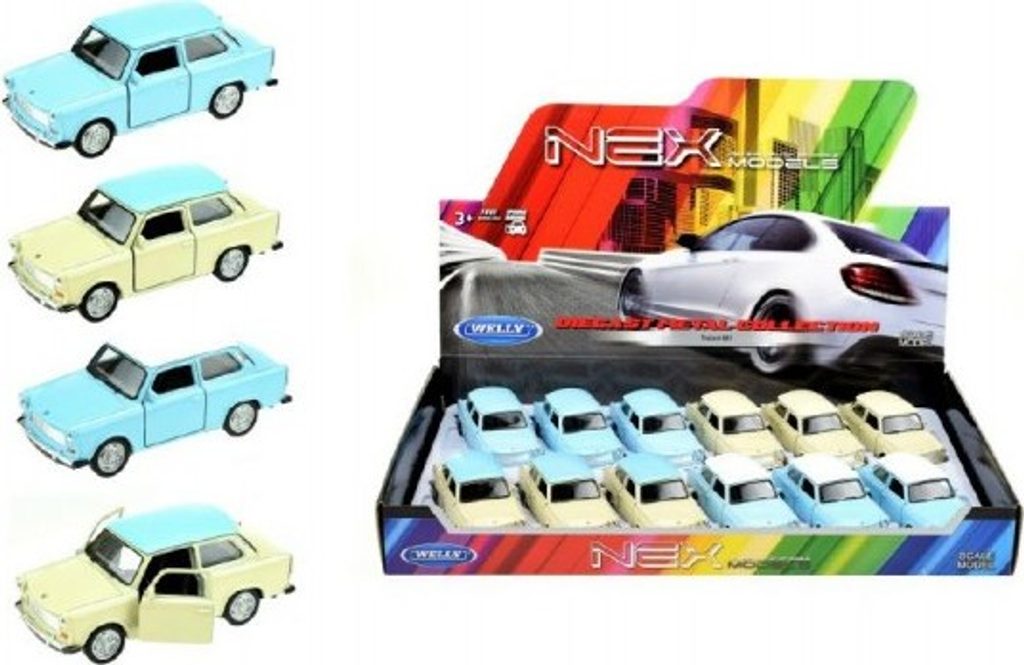 Model osobního auta s otevíracími dveřmi a kufrem, připraven na závody. Auto je stříkané originálním autolakem. Luxusní vůz je vyroben z kovu a má plastové doplňky. Vozidlo je věrnou kopií reálných aut značky Trabant. MIX variant zboží, odesíláme náhodně. Jestliže si přejete určitou variantu, napište nám poznámku v posledním kroku objednávky. Pokud bude varianta dostupná, odešleme dle vašeho požadavku.