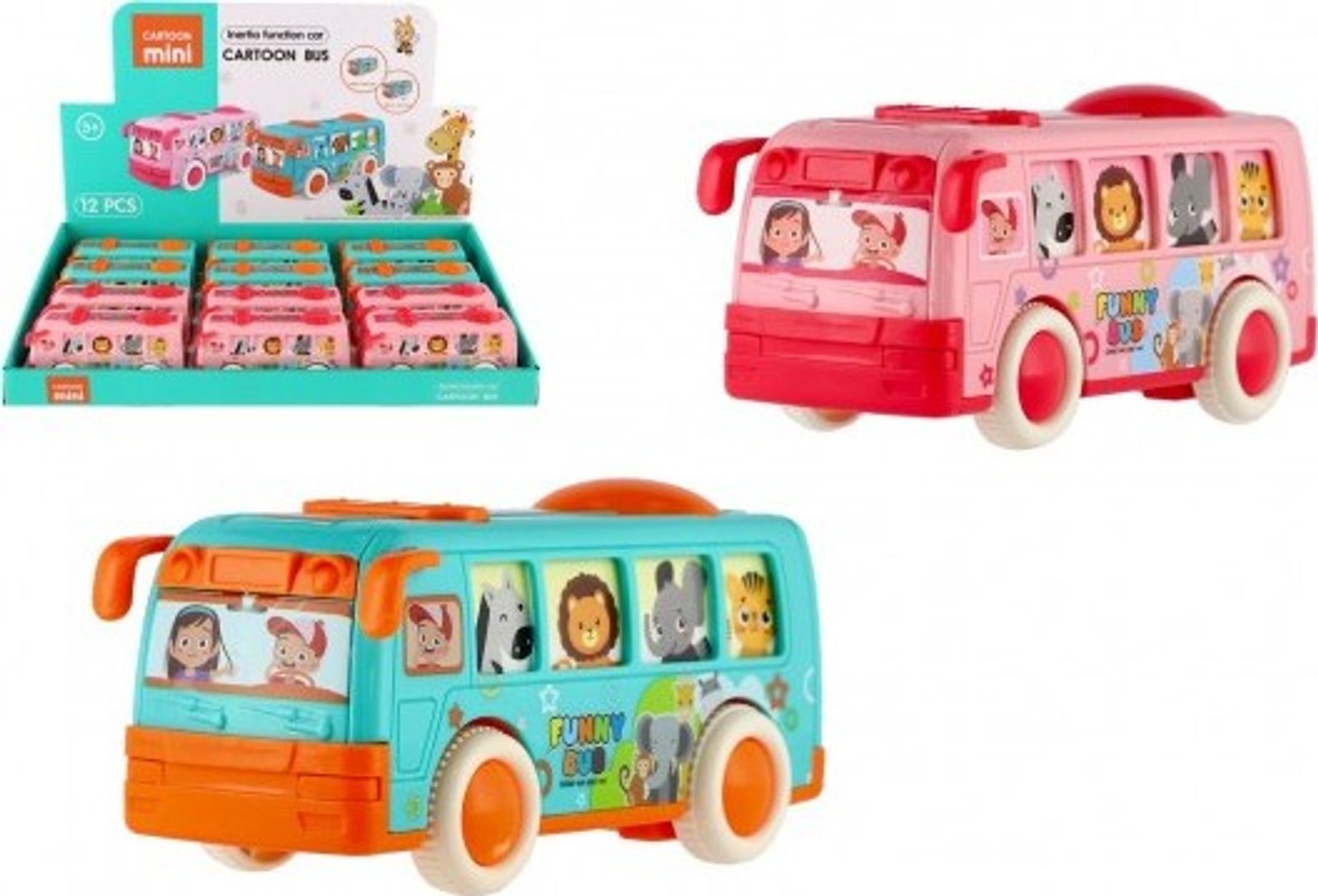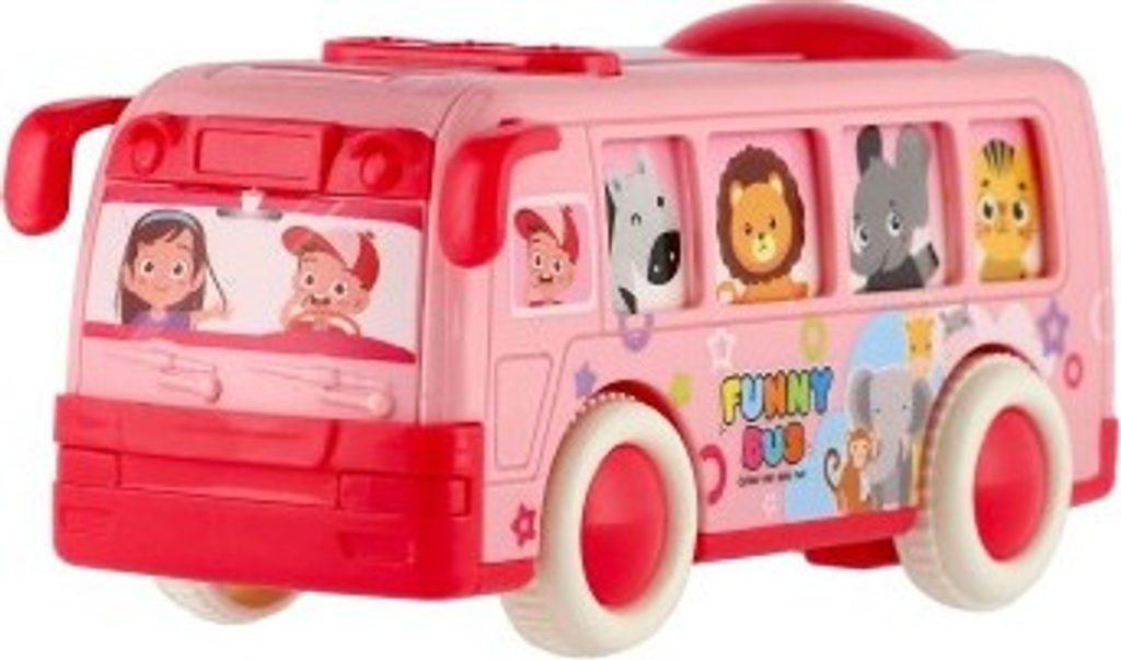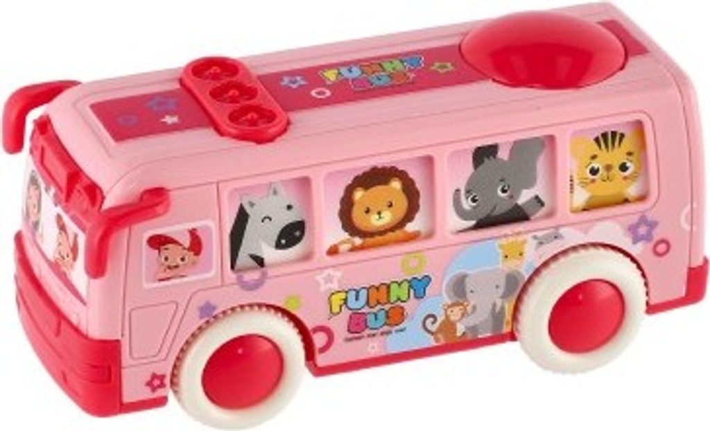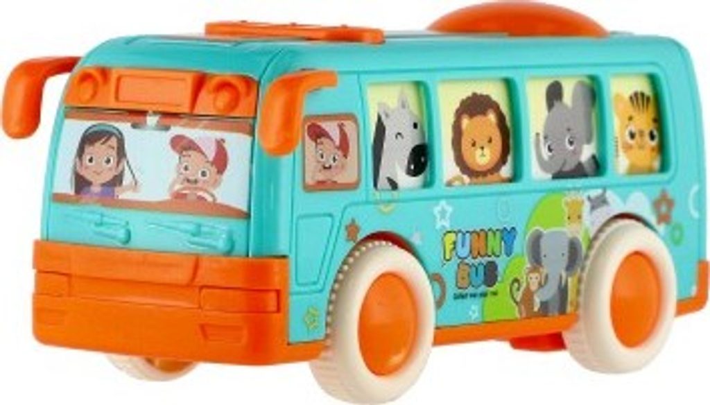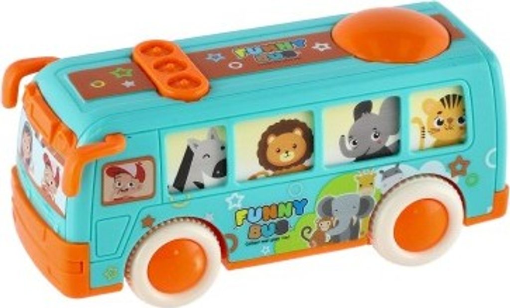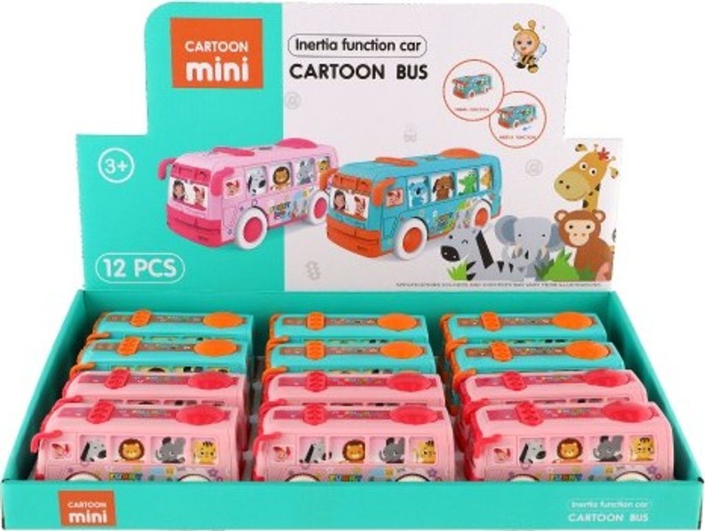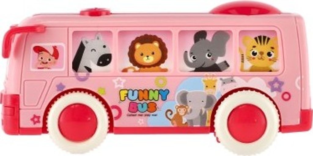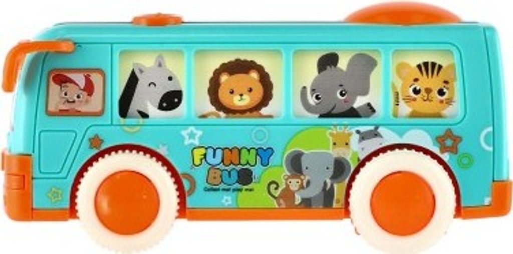 Krásný autobus pro nejmenší, který jim umožní vzít na výlet i všechny pasážery. Okýnkami autobusu vidímě všechny cestující, které ztvárňují zvířátka. Jede například zebra, lev nebo žirafa. Autobus jezdí na setrvačník.