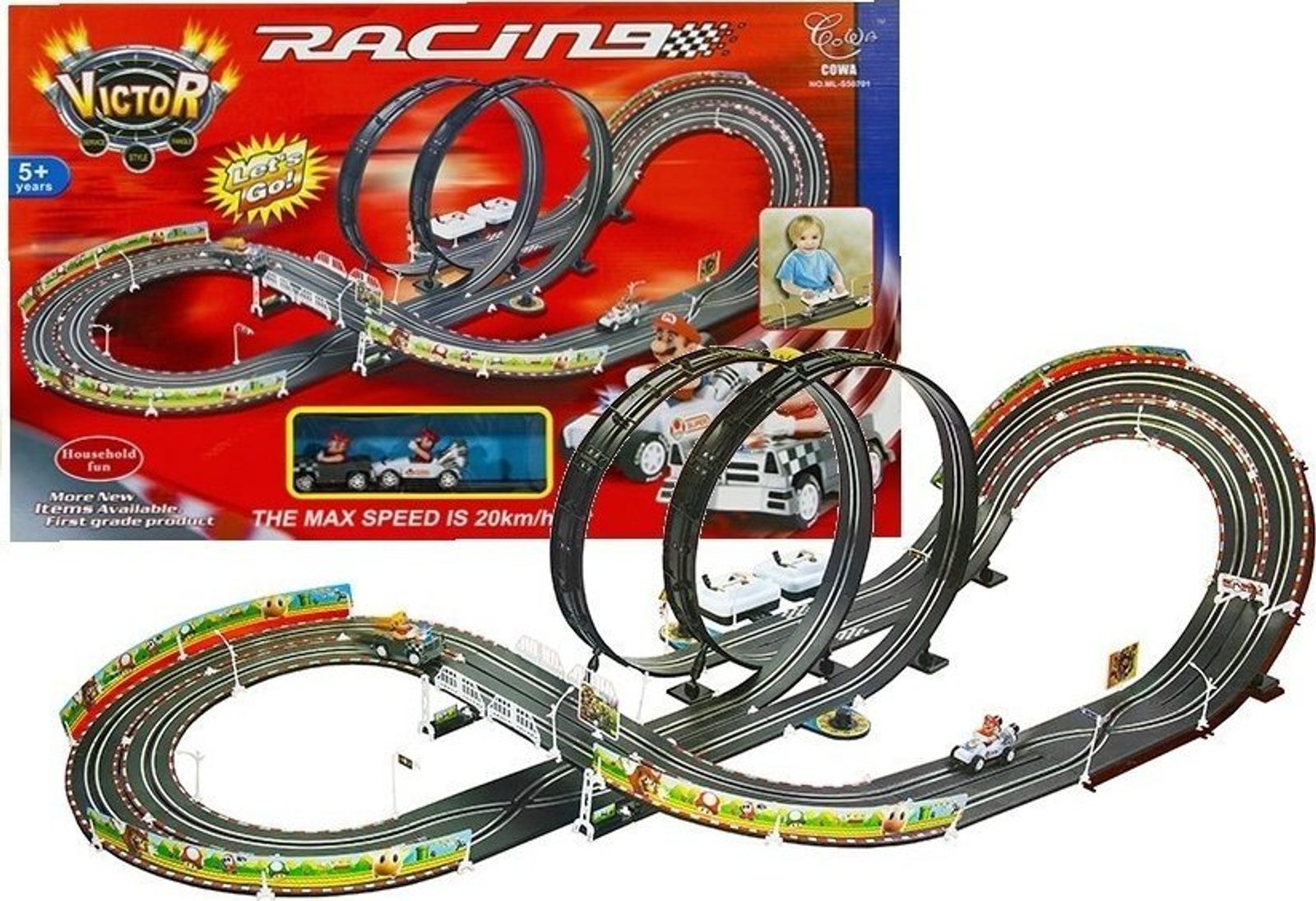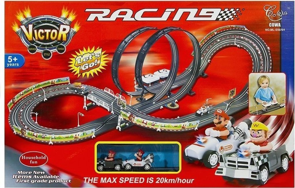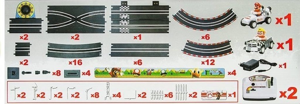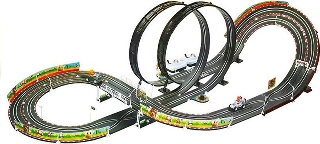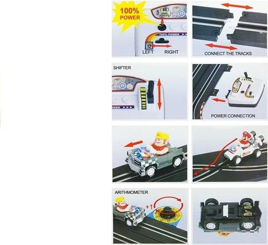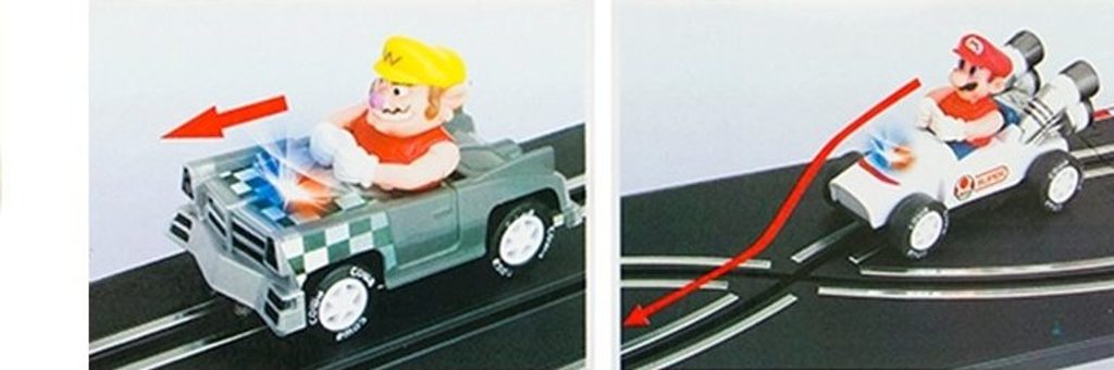 Nádherná závodní dráha má ovladače s potenciometrem pro nastavení rychlosti jízdy, tlačítko turbo a přepínač směru jízdy. Závodní vozy jsou vybaveny LED diodami s iniciály postaviček.