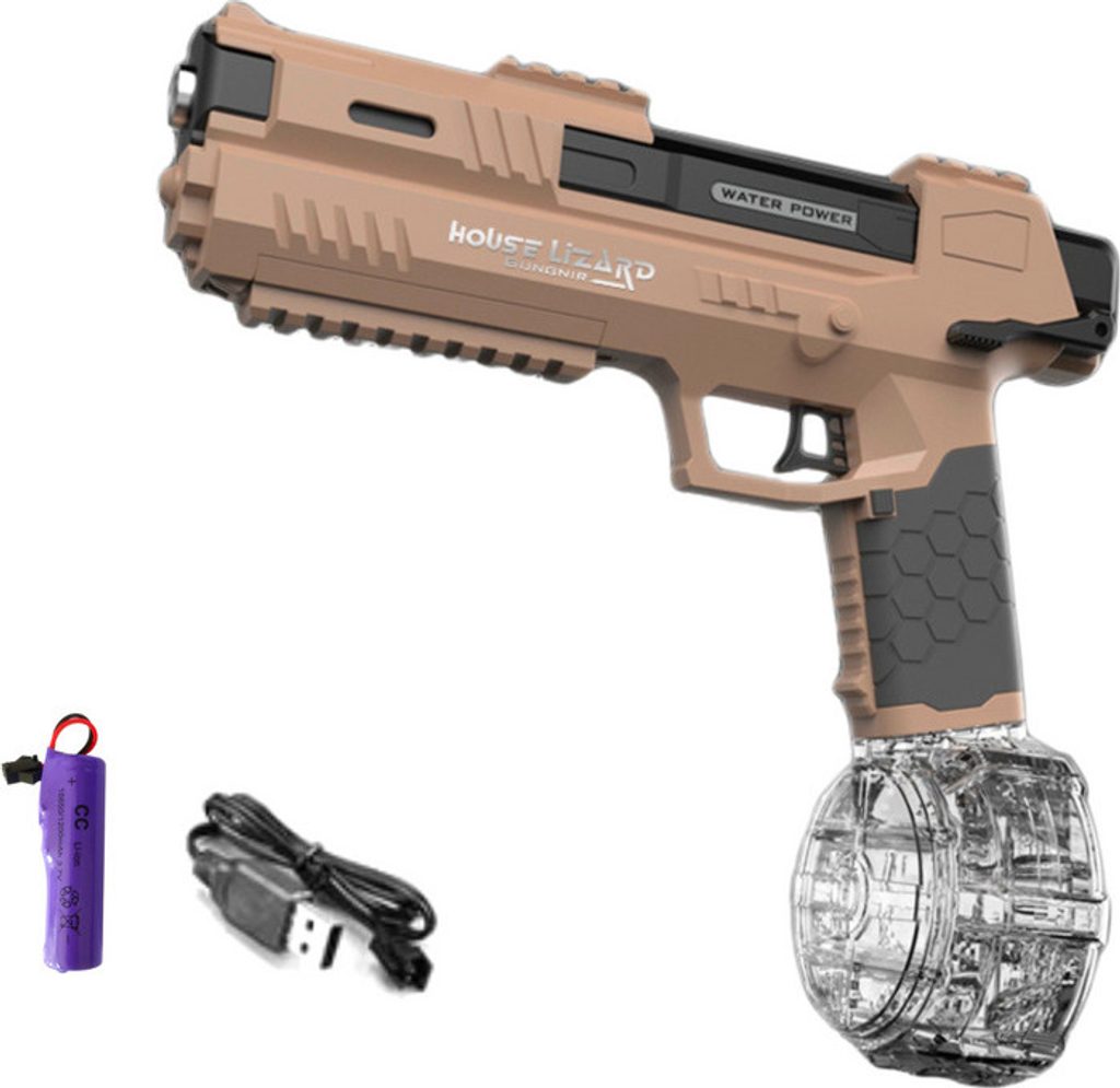 Automatická vodní pistole je moderní hračka, která spojuje eleganci s funkčností. Jeho stylová světle hnědá barva mu dodává sofistikovaný vzhled, který se odlišuje od ostatních modelů dostupných na trhu. Pistole je vyrobena z pevného, kvalitního materiálu, který zaručuje odolnost a pevnost a zároveň je lehká a pohodlná na používání.