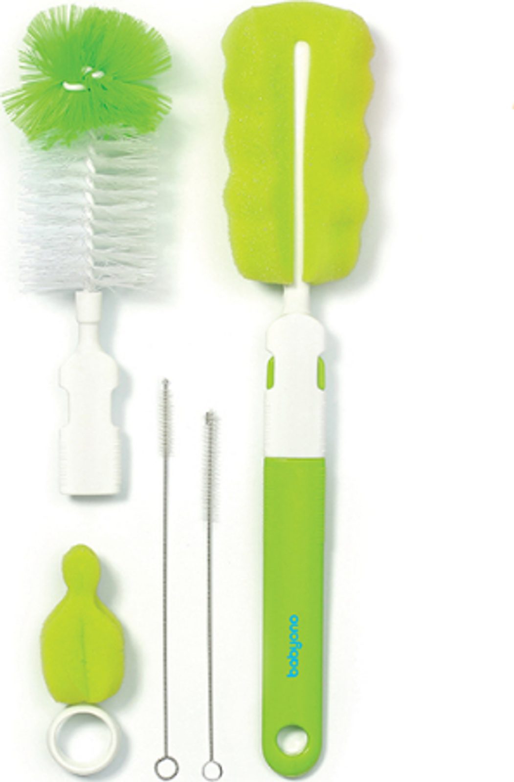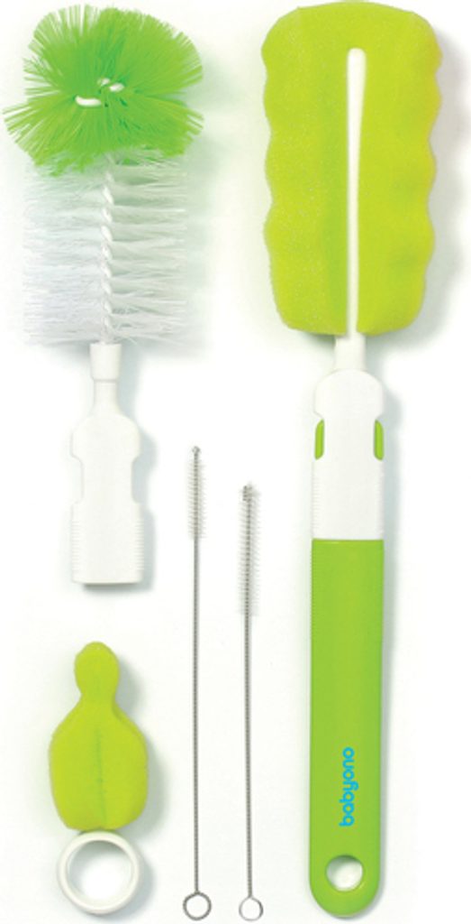Sada je vybavena dvěma výměnnými hroty na mytí lahví, jeden je zakončen kartáčkem s měkkou štětinou, druhý pružnou houbičkou, hroty lze libovolně měnit. Součástí sady je i houbička na čištění saviček. Kartáč má závěsný otvor pro vysušení před dalším použitím. Kartáče se dostanou do těžko dostupných míst a pohodlné rukojeti zajistí stabilní úchop. Kartáče jsou vyrobeny z odolných a bezpečných materiálů, které neobsahují Bisfenol A.