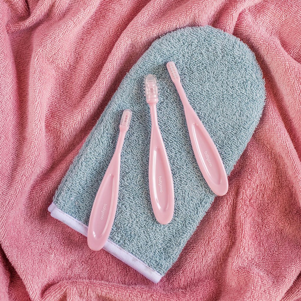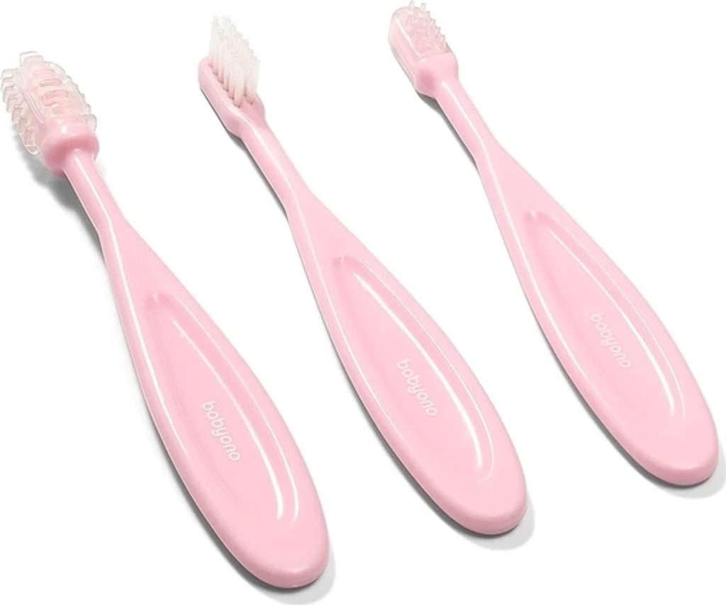 BABYONO Kartáček na zuby, 3 kusy - růžová
