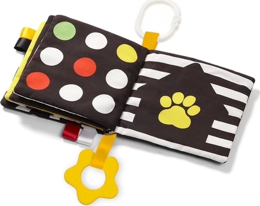 • Kniha má kontrastní barvy, podporující vývoj zraku dítěte