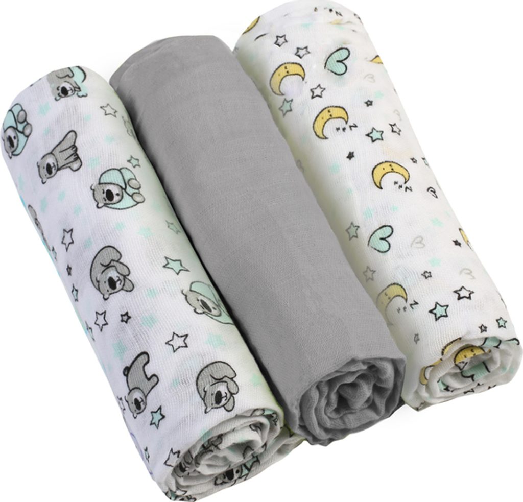 Super měkké MUŠELÍNOVÉ plenky jsou nepostradatelným prvkem výbavičky - nenahraditelné jak v období novorozenců, tak i kojenců. Plena je z 100% bavlny, která je extrémně lehká a vzdušná. Plenky z tohoto materiálu lze používat od prvních dnů života - jako zavinovačku, lehkou deku, přebalovací podložku, prostěradlo nebo ručník. Skvěle se hodí jako přikrývka při kojení nebo jako podložka na paži rodiče pro ochranu oblečení před deštěm. Lze je použít i jako plyšáka nebo lehký obal na kočárek. Osvědčí se v každé situaci vyžadující blízkost dětské pokožky. Sada obsahuje 3 kusy plen: 2 z nich jsou zdobené barevnými potisky, třetí je jednotně barvený. Jsou baleny v průhledném sáčku se zapínáním na druky.