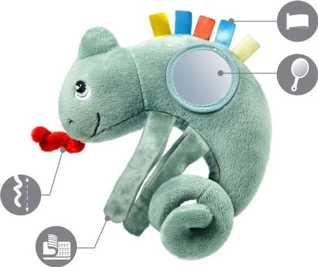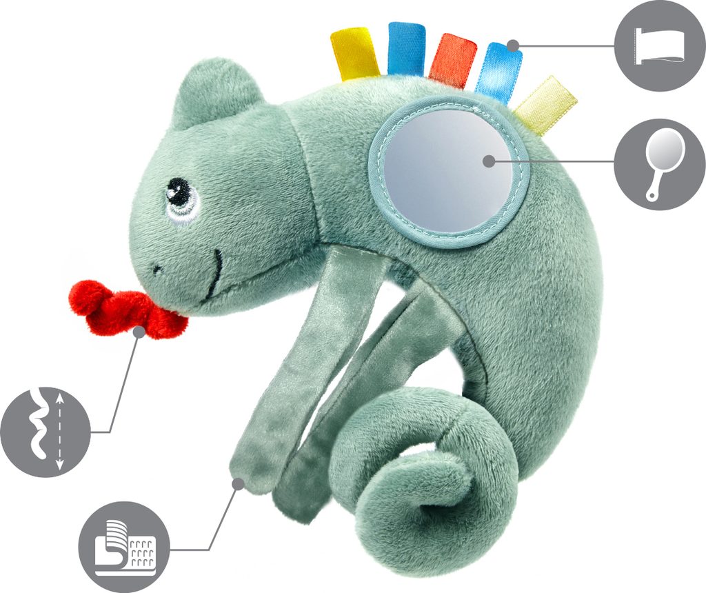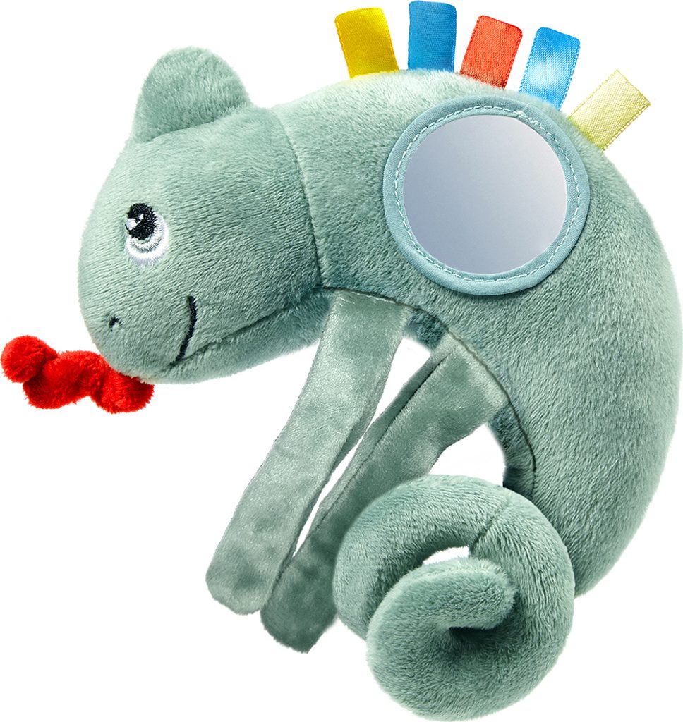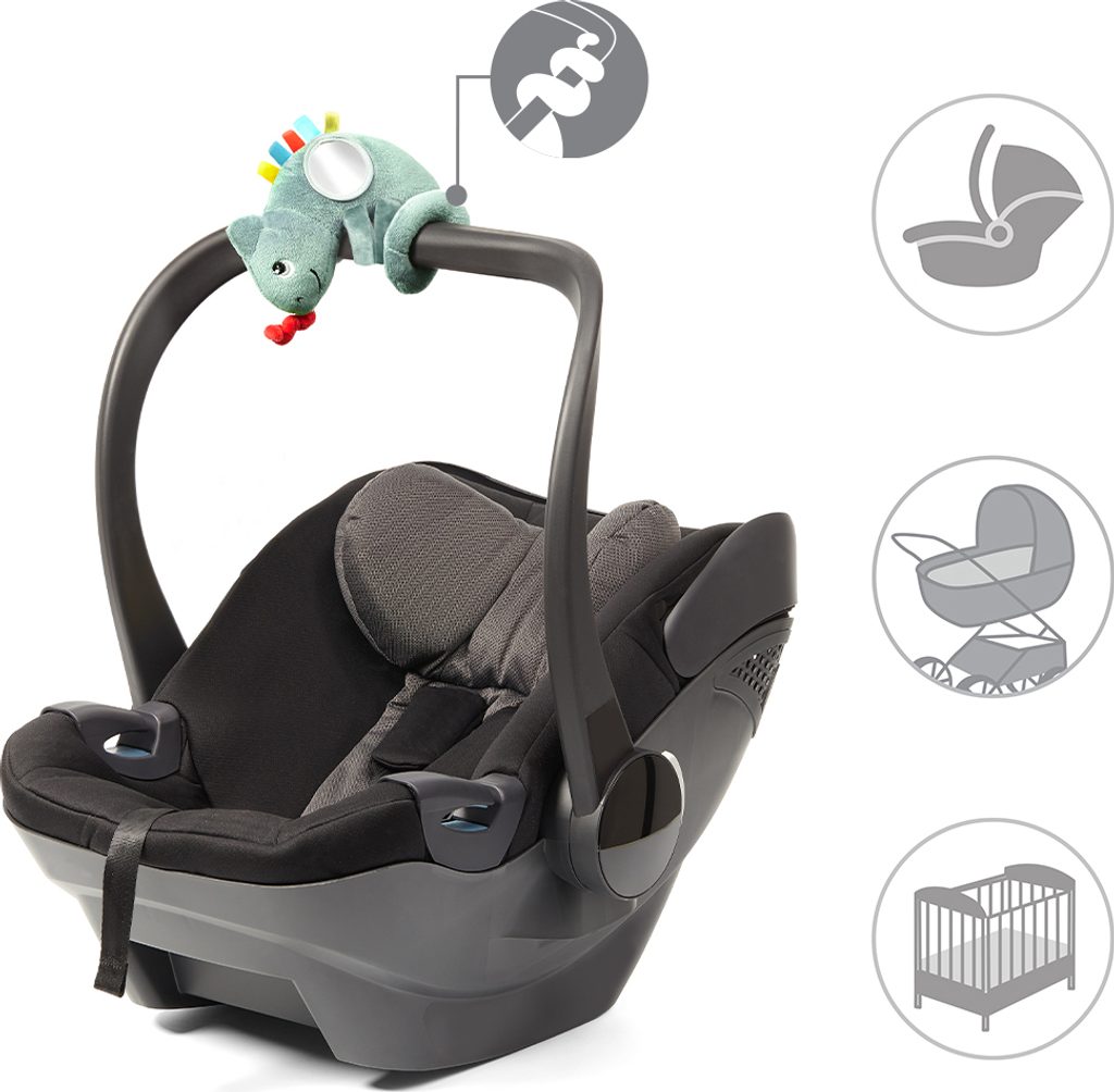 Díky univerzálnímu držáku lze hračku zavěsit na autosedačku, kočárek nebo postýlku.