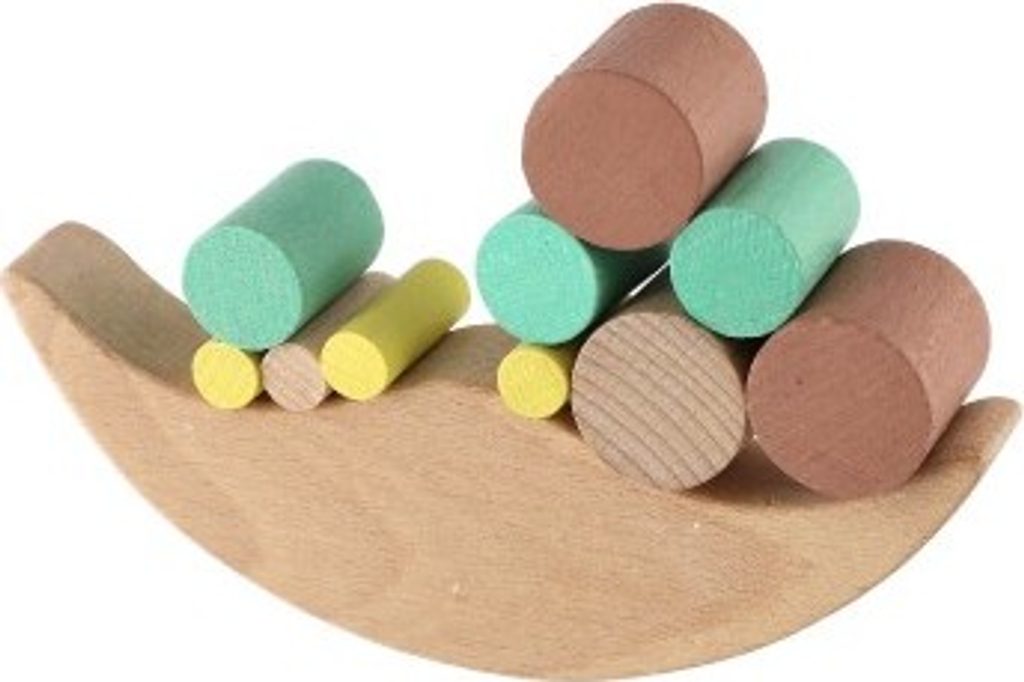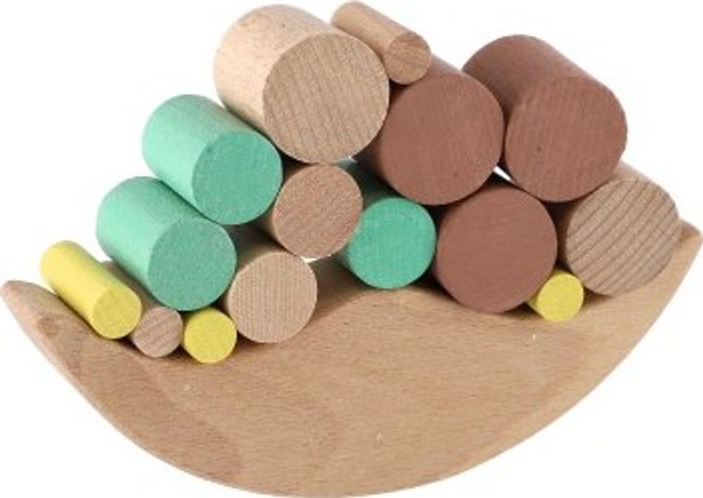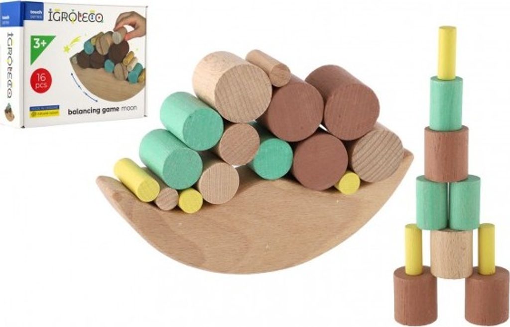 Zajímavá dovednostní hra Balancující dřevo. Hra spočívá v uspořádání, co největšího počtu barevných, různě velkých bloků na dřevo ve tvaru měsíce. Během uspořádávání bloků se měsíc neustále kýve tak pozor, abyste bloky neshodily z měsíce. Vynikající hra, která podporuje rozvoj vzorově-motorické koordinace a navíc má pozitivní vliv na utváření prostorové představivosti dítěte. Počet dílků: 16 kusů