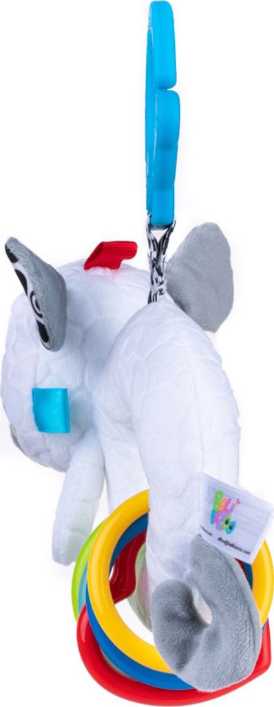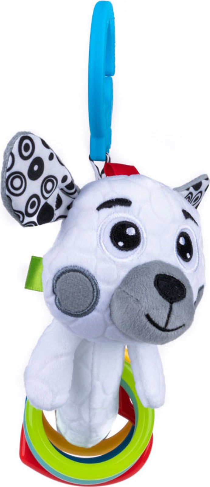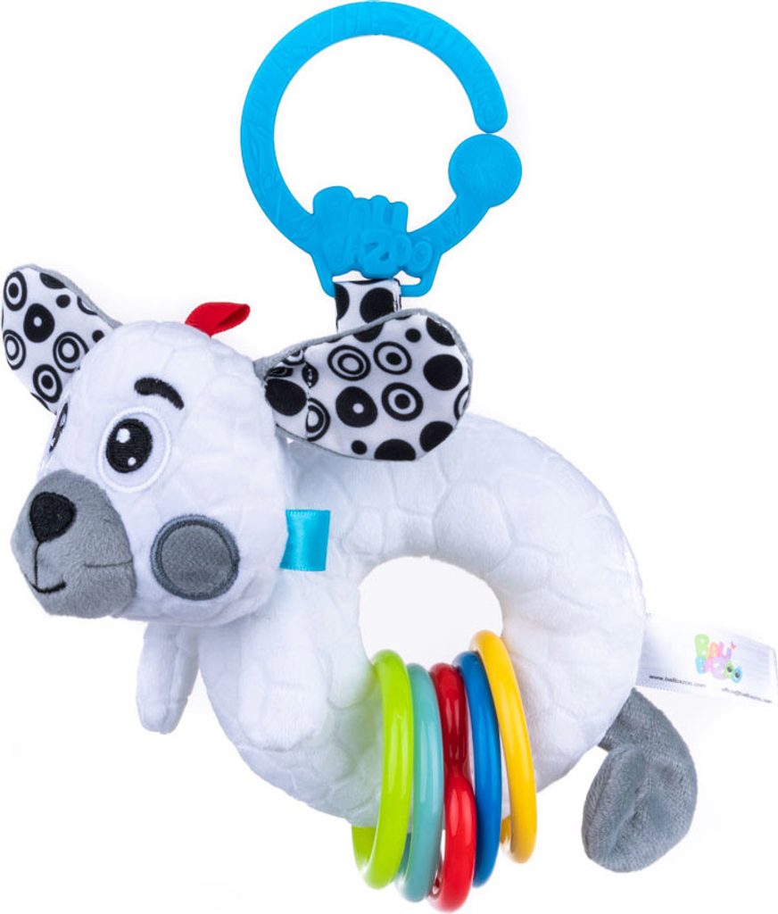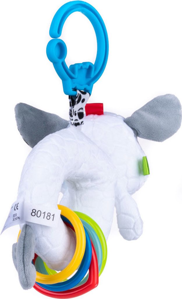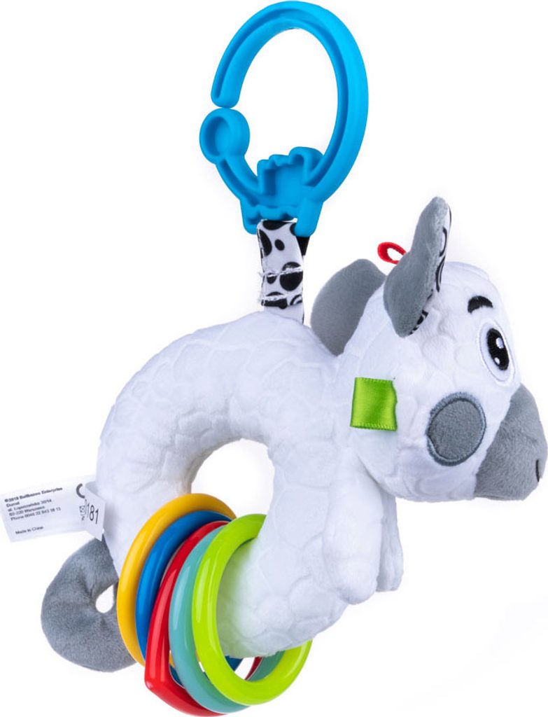 Hračka je vyrobena z materiálů s různými texturami a barevnými kruhy, které při zatřesení chrastí. Zároveň rozvíjí kognitivní dovednosti, a tak podněcuje lidi k objevování světa. Kontrastní barvy stimulují smysl pro zrak. Praktická přezka vám umožní připnout hračku kamkoli.