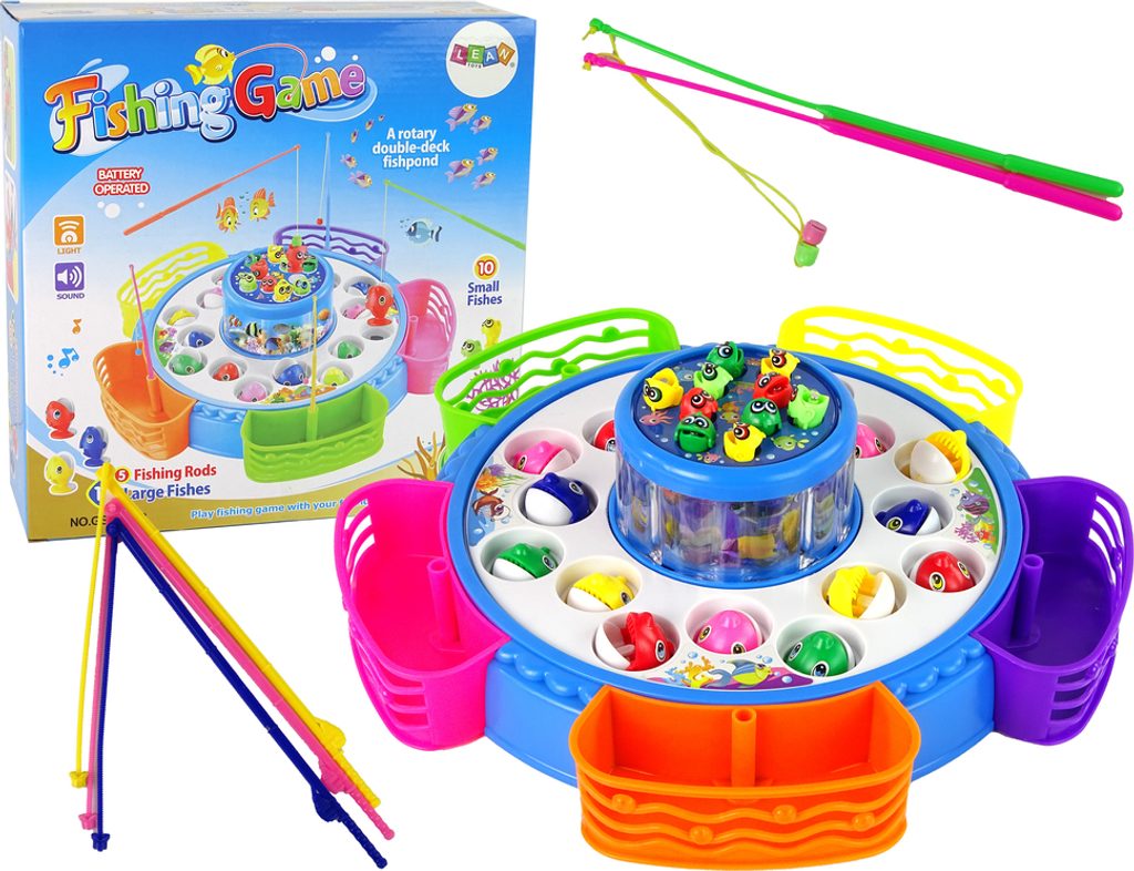 Součástí sady jsou i rybičky a dva klacky s magnetem, díky kterým je můžeme chytat. Obsahuje i větší ryby a k nim tři klacky. Tato rozmanitost umožňuje kreativní hru. Všechny prvky jsou barevné a vyrobené z plastu, díky čemuž je hračka velmi odolná.