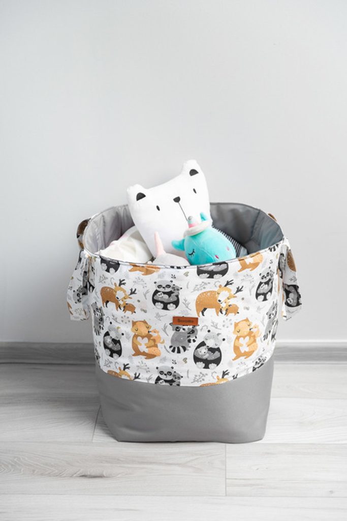 Střední košík na hračky je velmi prostorný a extrémně odolný. Díky čtvercové základně se do ní vejde více než standardní koše. Jeho úchytky na přenášení jsou uvnitř vyztužena páskou, takže se nezalekne velkého množství hraček. Spodní část koše a jeho vnitřek jsou vyrobeny z odolného polyesterového materiálu, který není náchylný na oděrky a protržení, zatímco horní část je zdobena barevnou bavlnou, která dodává jedinečné kouzlo a dělá z koše ozdobu dětského pokoje. Skvěle poslouží také jako koš na prádlo nebo organizér na jiné předměty. Je vyztužený vrstvou silikonové netkané textilie, díky které drží tvar a v případě potřeby jej lze složit a schovat do šuplíku. Vyrobeno v Polsku z vysoce kvalitních materiálů.