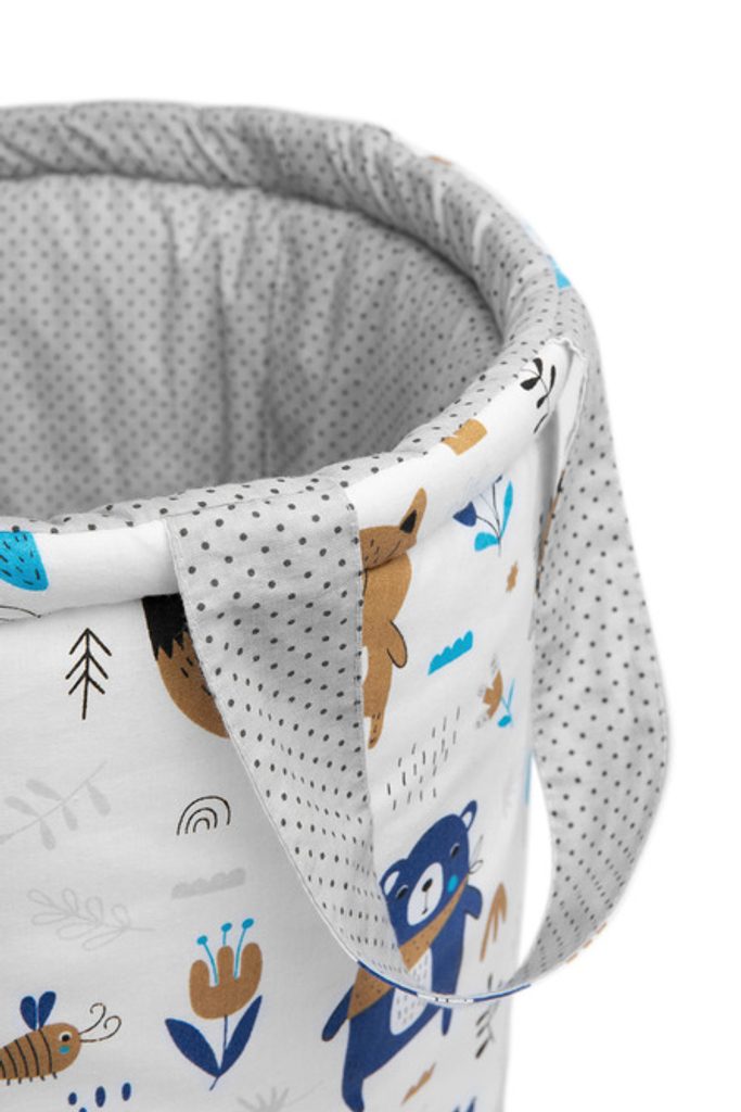 Bavlněný košík Sensillo se bude skvěle hodit do dětského pokoje, kde se do něj vejde spousta hraček a doplňků. Dá se použít i jako koš na prádlo. Je oboustranný a jeho potah je vyroben ze 100% bavlny. Je vyztužený vrstvou silikonové netkané textilie, díky které drží tvar a po složení se vejde do šuplíku. Má uši pro snadné přenášení.