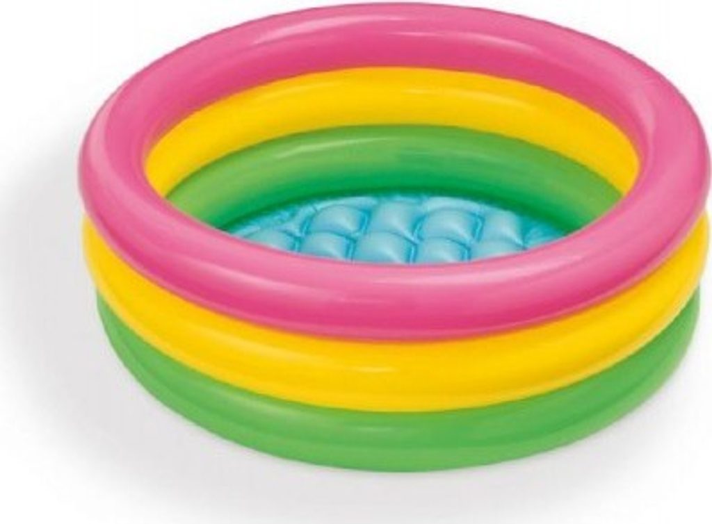 Dětský nafukovací bazenék ve veselých barvách má tři komory a nafukovací dno. Děti se moc rády cachtají ve vodě a když přidáte balónky nebo jiné vodní hračky, nebudou již chtít z vody. Bazének je vyroben z odolného vinylu a má tři nafukovací kruhy ve veselých barvách. Měkké nafukovací dno, průměr 61 cm, výška 22 cm. Objem 28 litrů při výšce vodní hladiny 14 cm.