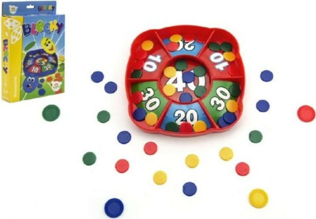 Úkolem je dostat všechny malé blechy pomocí té velké do přihrádek v krabičce, hra obsahuje 4 různobarevné sady koleček, vždy 5 malých a 1 velké