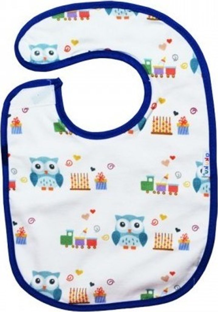 Froté bryndáček je vyroben z vysoce kvalitní bavlny. Vnitřní část je podšitá voděodolnou vrstvou měkké olejové tkaniny, která navíc chrání oblečení před ušpiněním a činí bryndáček voděodolným. Pohodlné a praktické zapínání na suchý zip zvyšuje komfort nošení bryndáku a barevné aplikace zpříjemňují dítěti jídlo.