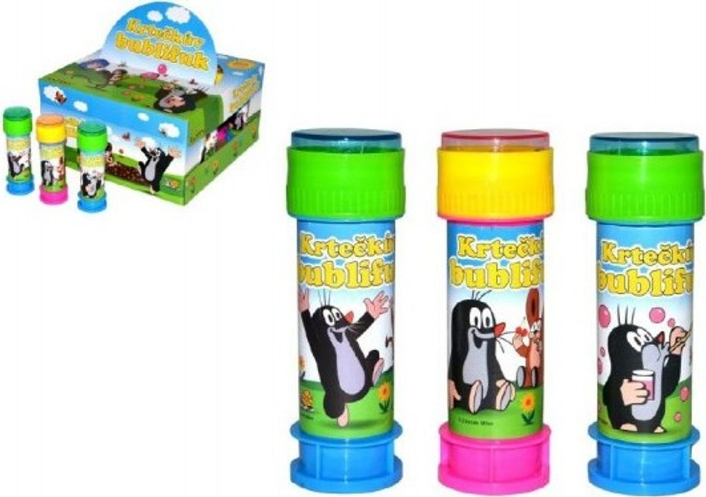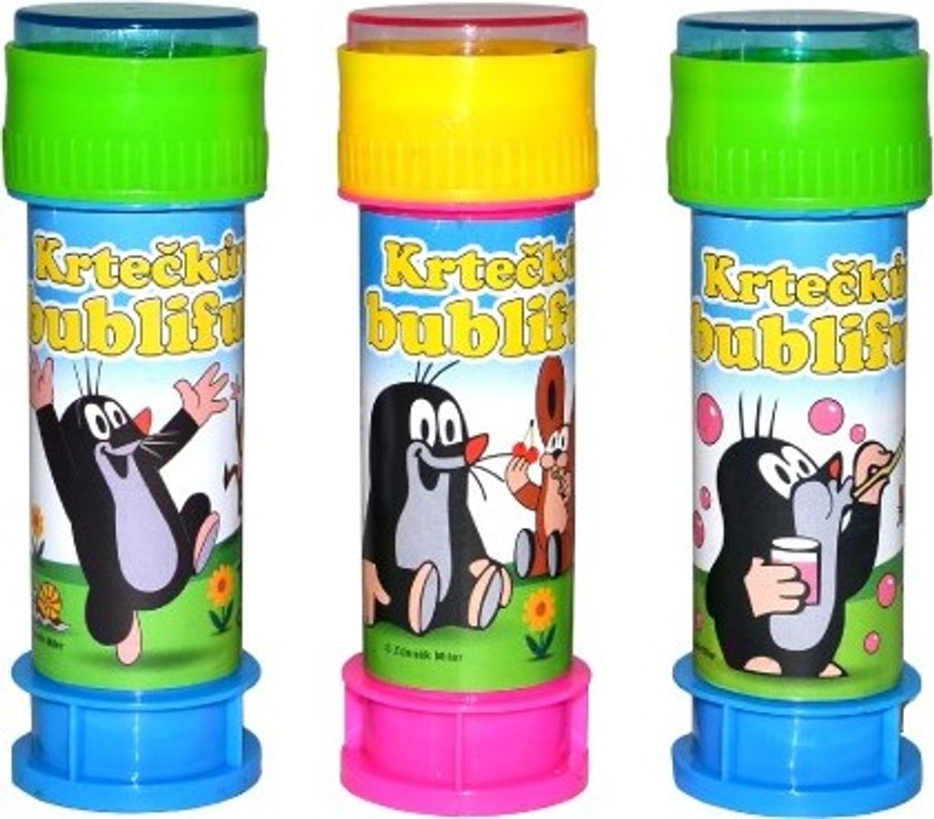 Dětský bublifuk s hrkavkou s motivem Krtečka. Každé dítě miluje bublifuk. Bubliny jsou jako kouzelné balonky, které si dítě může vykouzlit a obdivovat jejich duhovou barvvu. Je to velmi vděčná hračka, které vaše dítě zabaví na hodně dlouho.