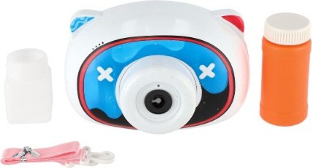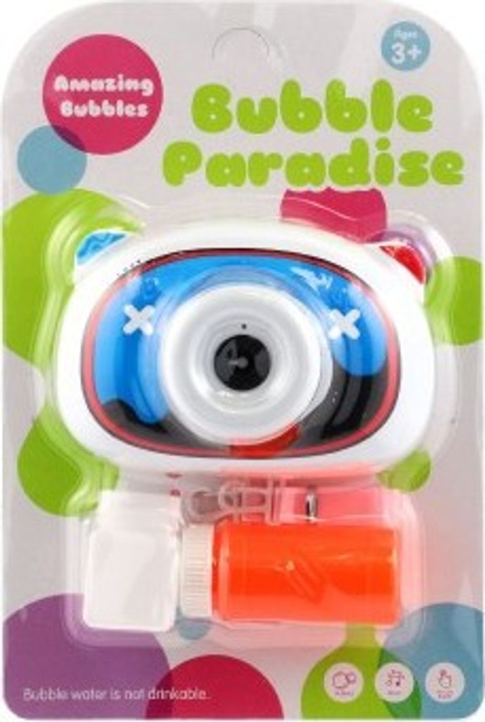 Dětský bublifuk ve tvaru fotoaparátu dokáže vytvořit nekonečné množství bublin. Nejdříve je třeba nasadit lahvičku s mýdlovým roztokem přímo do boční části bublifuku. Zmáčknutím spouště fotoaparátu se začnou z přední části generovat bubliny za současného zvuku melodie a focení. Součástí balení je i popruh k zavěšení fotoaparátu kolem krku.