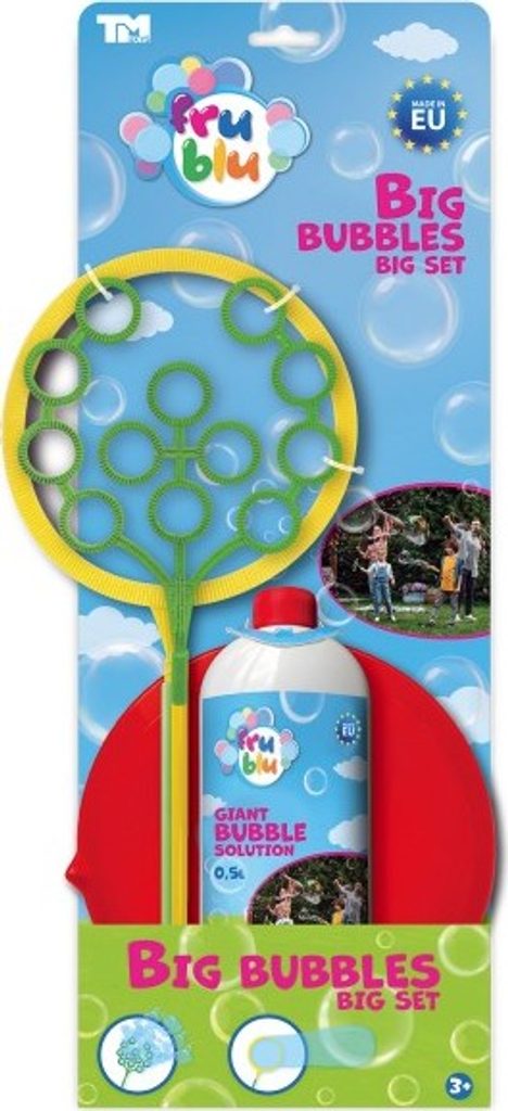 Bubliny FRU BLU dosahují obrovských rozměrů a mají neskutečné tvary. Září všemi barvami duhy. Bubliny FRU BLU vznikají díky speciální tekutině, která je produkována v EU. Jsou trvanlivé a jen tak neprasknou.