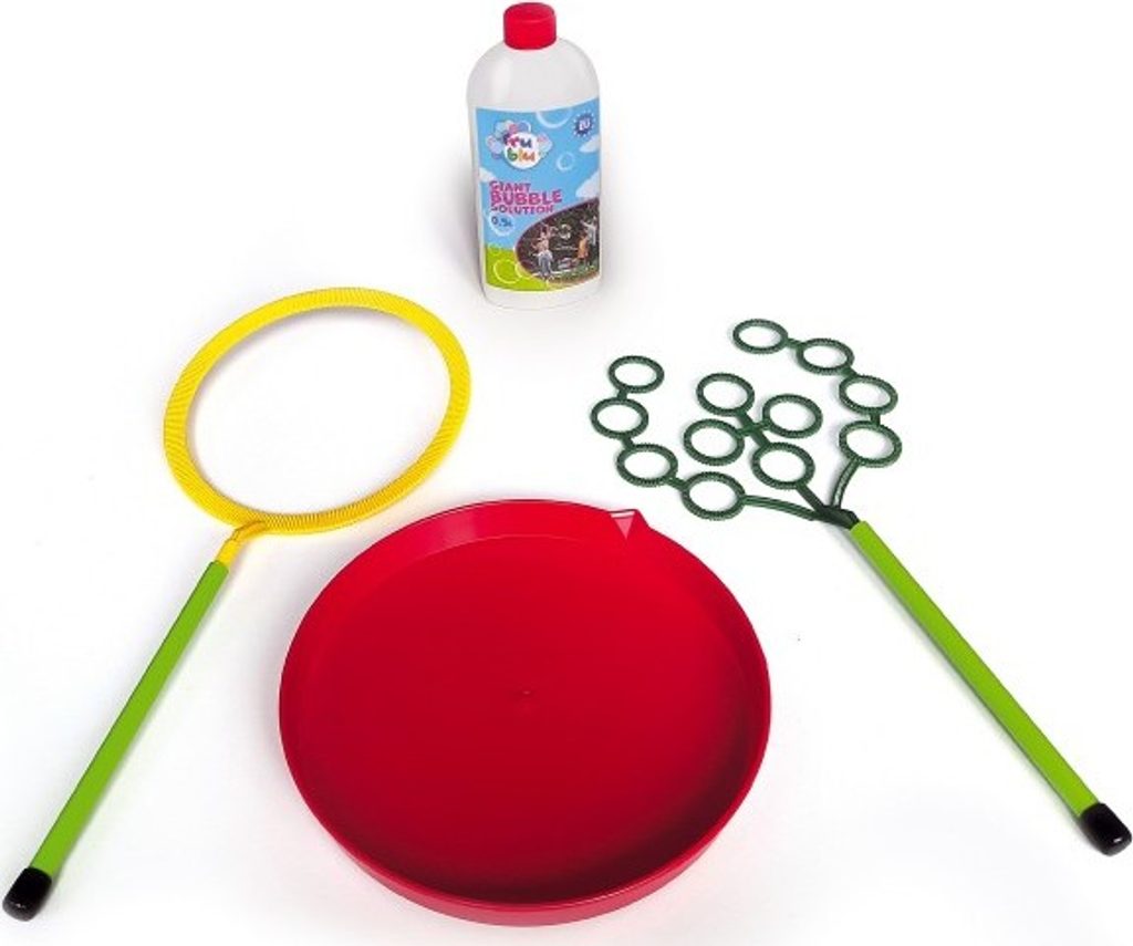 Sada obsahuje 2 obruče - 1 pro výrobu velkých bublin a jednu pro miliony malých bublinek. V balení také nádoba na tekutinu a náplň 0,5l.