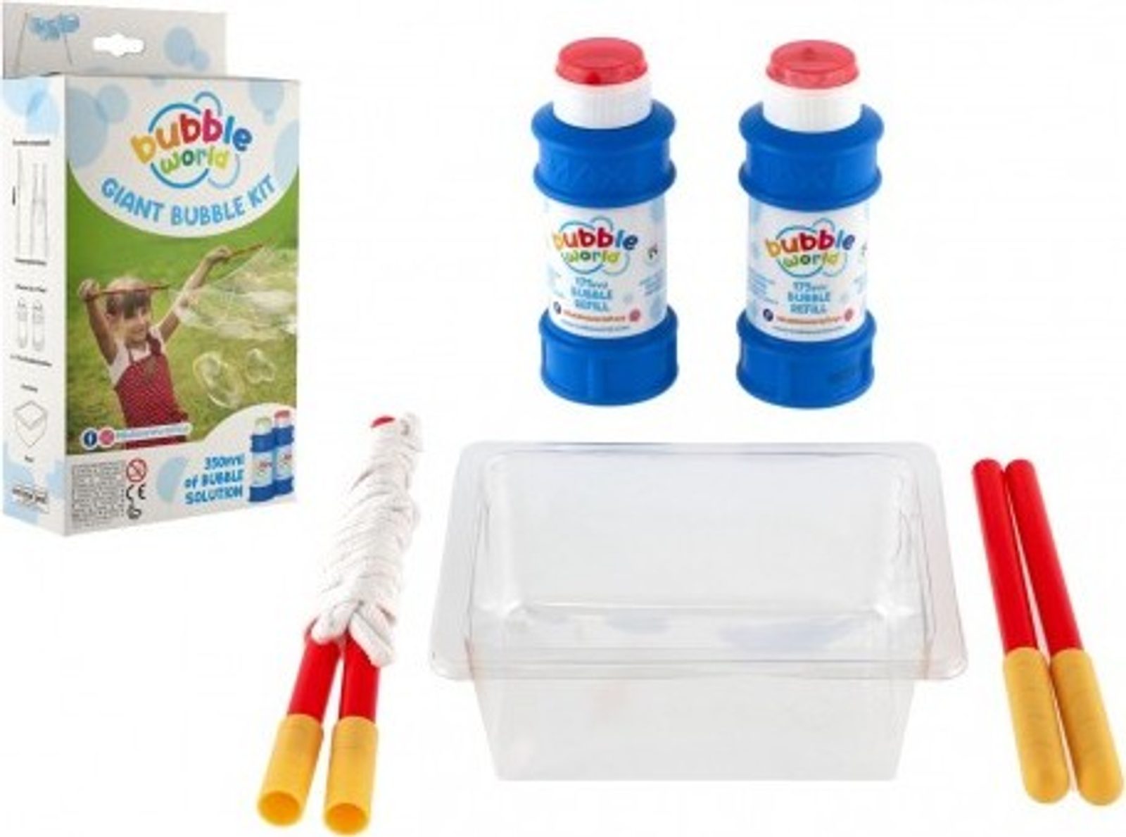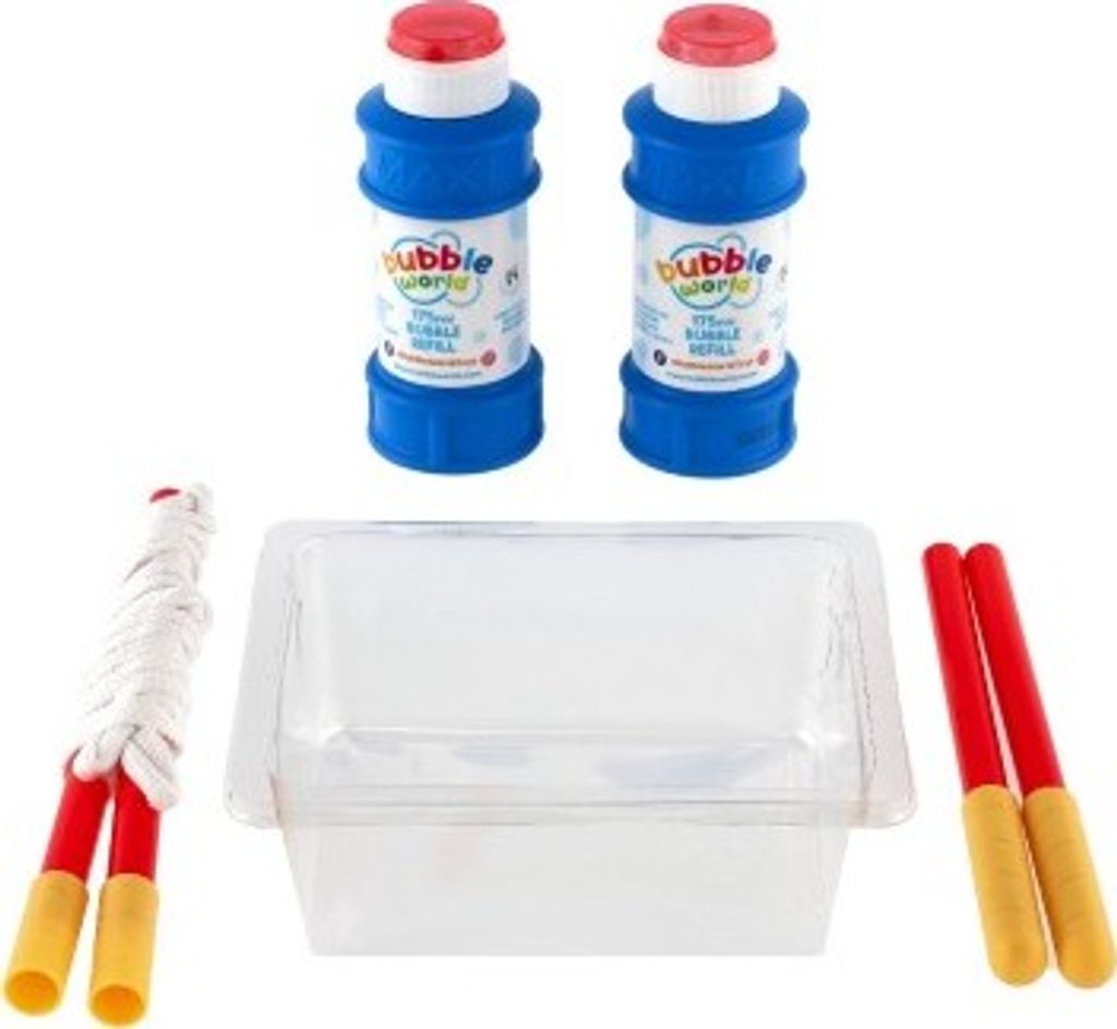 Sada pro vytváření velkých profesionálních bublin. Balení obsahuje 350 ml tekutiny a plastovou rukojeť s otvory ze šňůry. Šňůra vytváří tři smyčky, což dělá hru s bublinami ještě zábavnější.