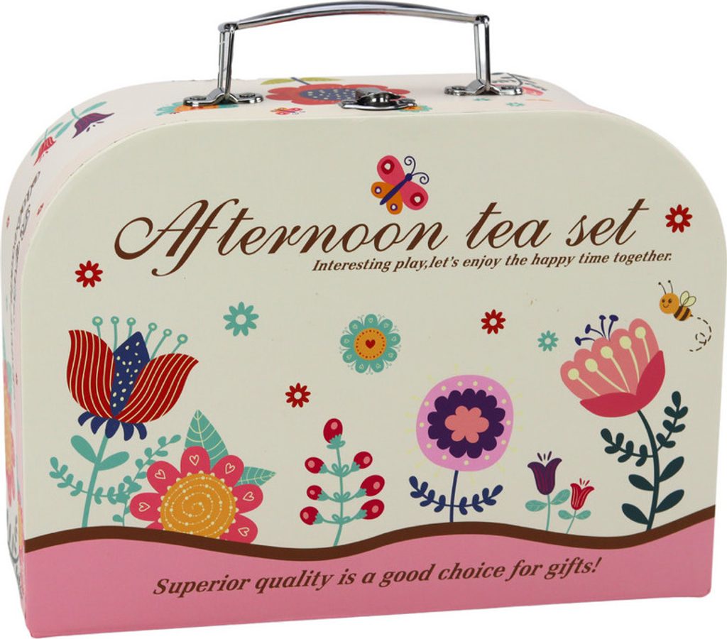 Čajový set v kufru je mimořádně okouzlující a kreativní hračka, která dítěti otevírá svět představivosti a rozvíjí dovednosti při hraní rolí. Tato nádherně zpracovaná sada byla vytvořena speciálně pro malé milovníky večírků. Uvnitř boxu je vše, co potřebujete k uspořádání nezapomenutelných čajových večírků.