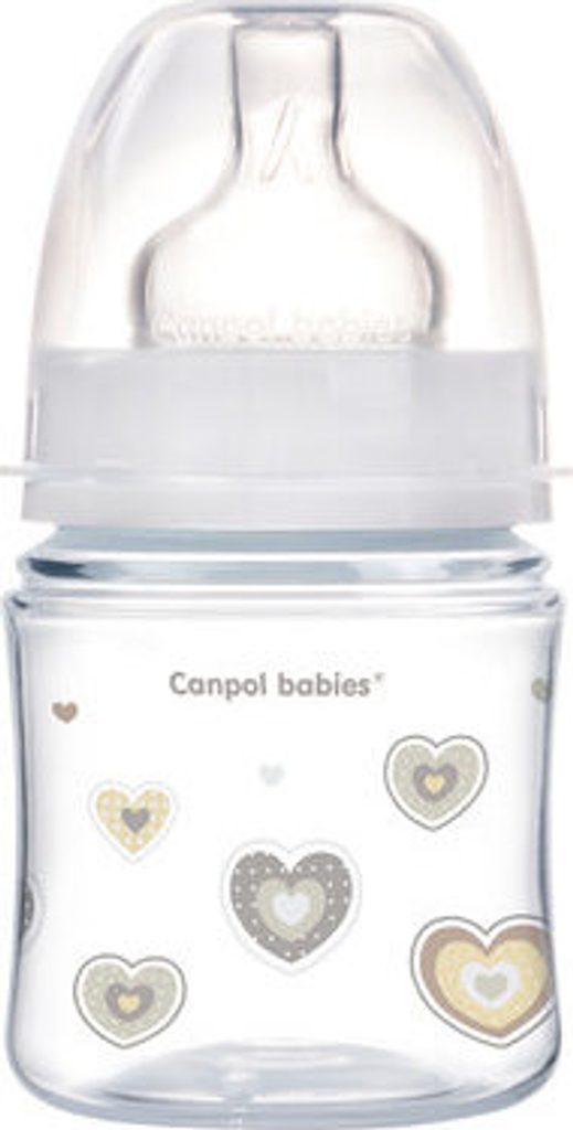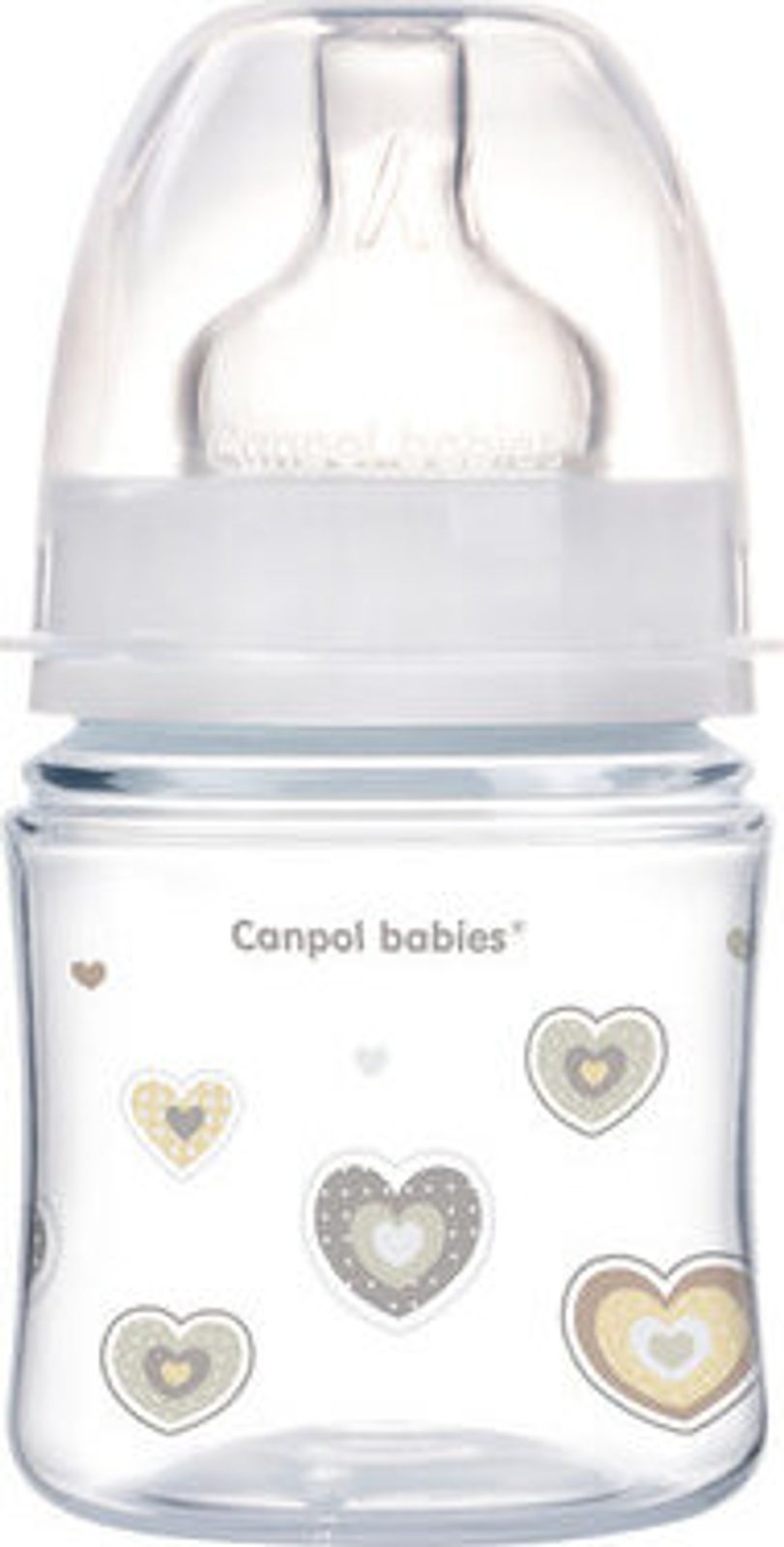CANPOL 35/216 Širokohrdlá antikoliková láhev Easystart Newborn Baby 120 ml béžová srdíčka