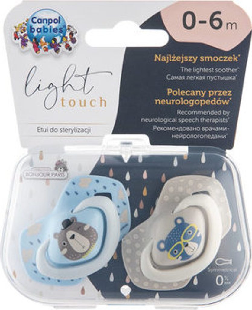 Canpol Babies Canpol Babies 2 ks symetrických silikonových dudlíků, 0-6m, Bonjour Paris, šedá/modrá