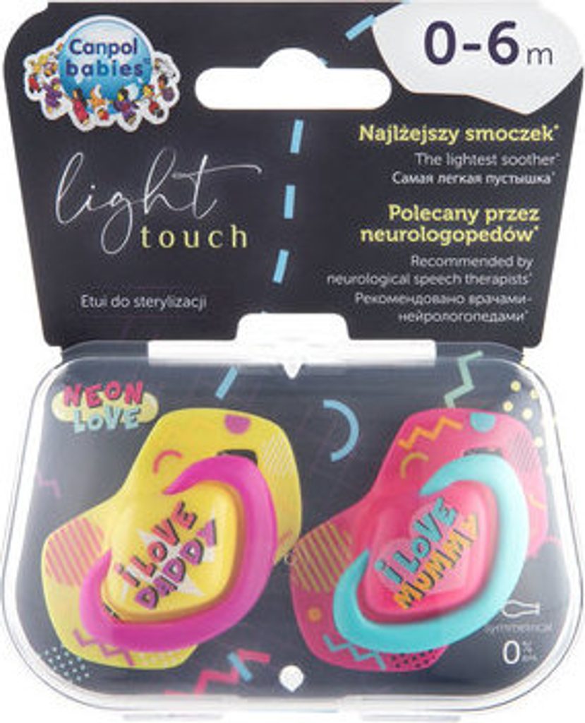 Canpol Babies Canpol Babies 2 ks symetrických silikonových dudlíků, 0-6m, Neon Love Baby, růžovo, žluté