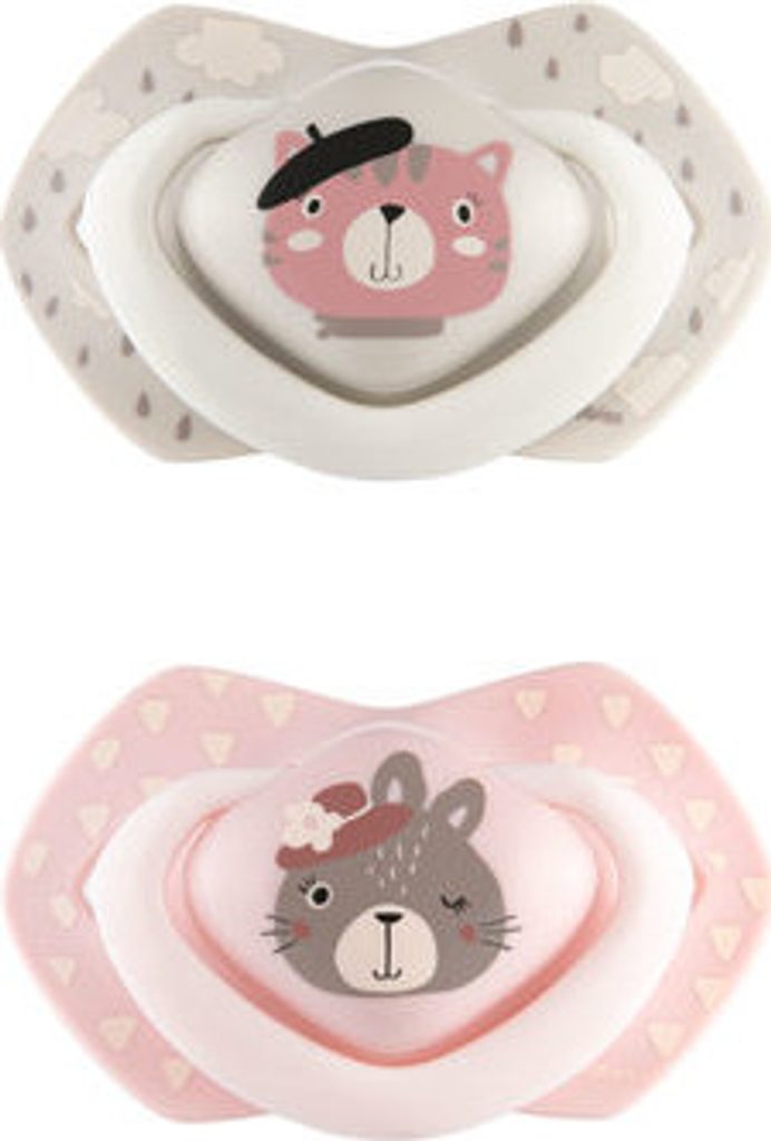 Canpol Babies Canpol Babies 2 ks symetrických silikonových dudlíků, 6-18m, Bonjour Paris, růžová/šedá