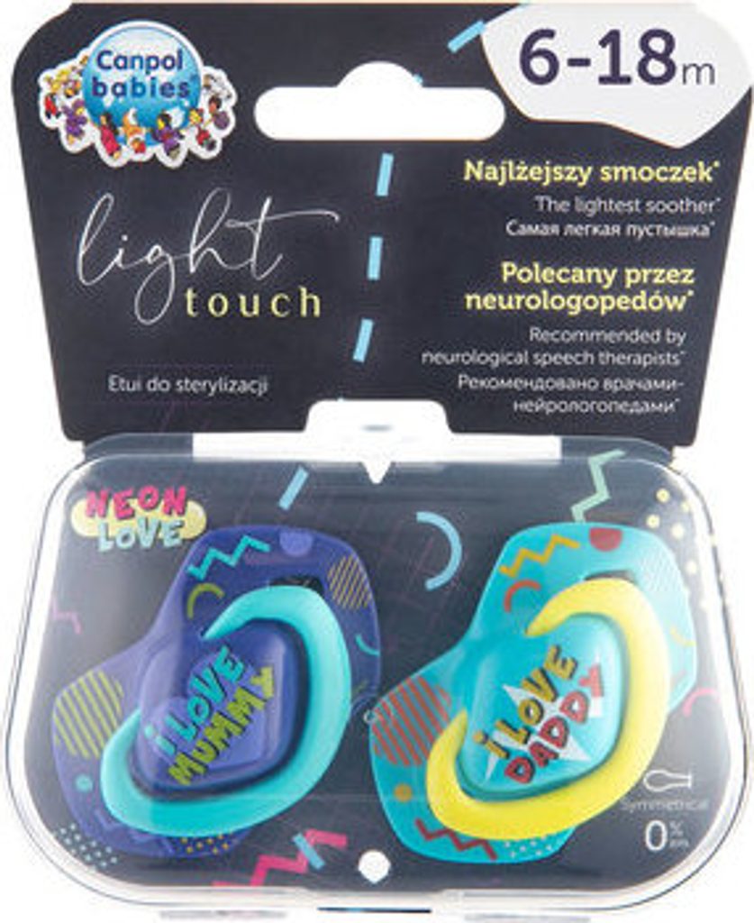 Canpol Babies Canpol Babies 2 ks symetrických silikonových dudlíků, 6-18m, Neon Love Baby, modré