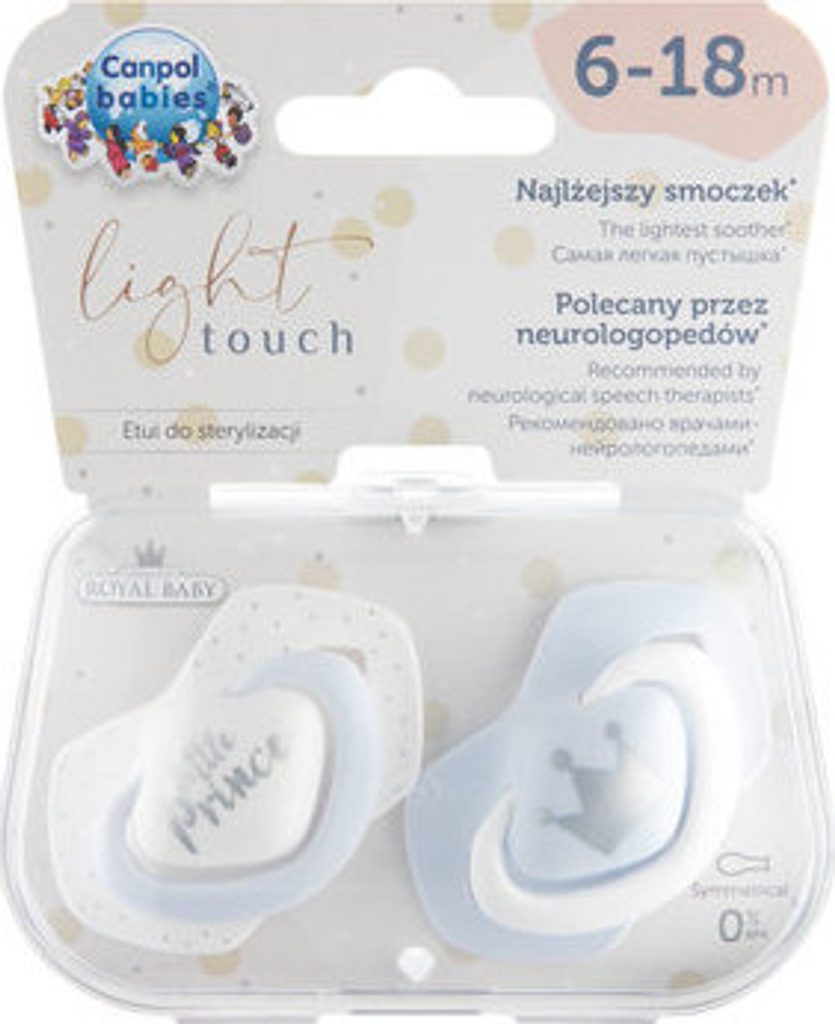 Canpol Babies Canpol Babies 2 ks symetrických silikonových dudlíků, 6-18m+, Little prince, modré