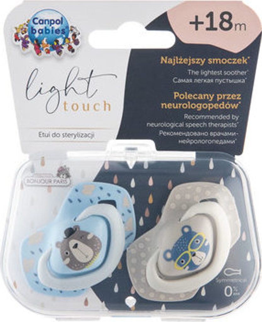 Canpol Babies Canpol Babies 2 ks symetrických silikonových dudlíků, +18m, Bonjour Paris, šedá/modrá
